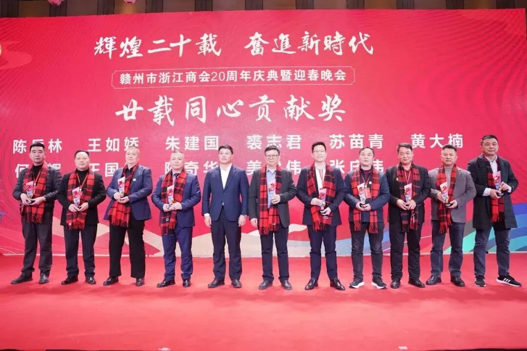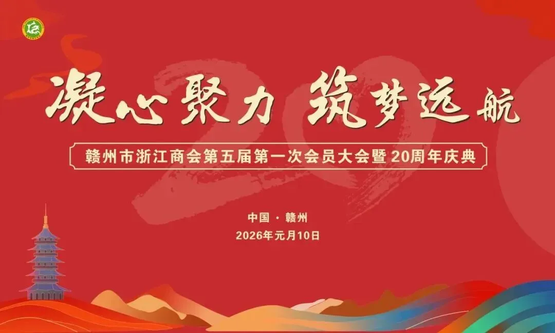 2026年1月10日,赣州市浙江商会第五届第一次会员大会暨商会成立二十周年庆典活动在赣州沃尔顿皇家花园酒店隆重举行,360余名领导、嘉宾、会员及乡贤代表齐聚一堂,共同见证商会承前启后、继往开来的荣耀时刻。赣州市江西财经大学EMBA同学联谊会党支部书记易永主任与四班部分学员应邀出席了庆典活动。