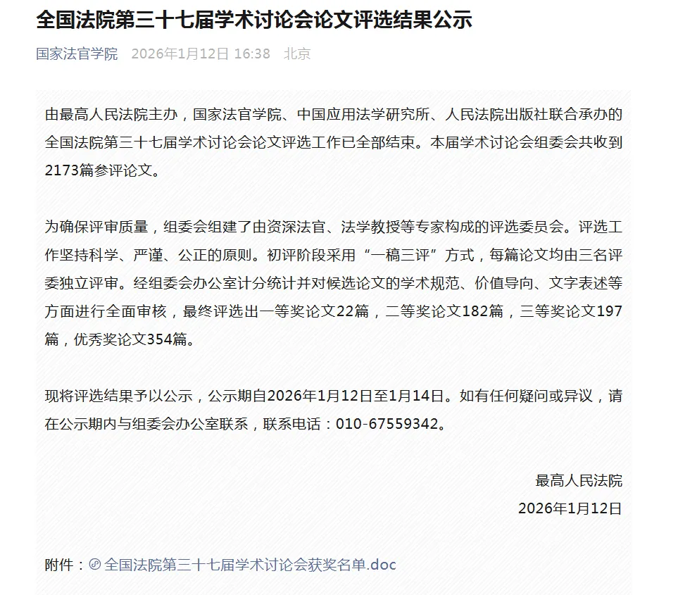 近期,全国法院第三十七届学术讨论会论文评选结果公示,赣州经开区法院《数据财产犯罪的归责困境与反向型构》获评学术讨论会优秀奖!!