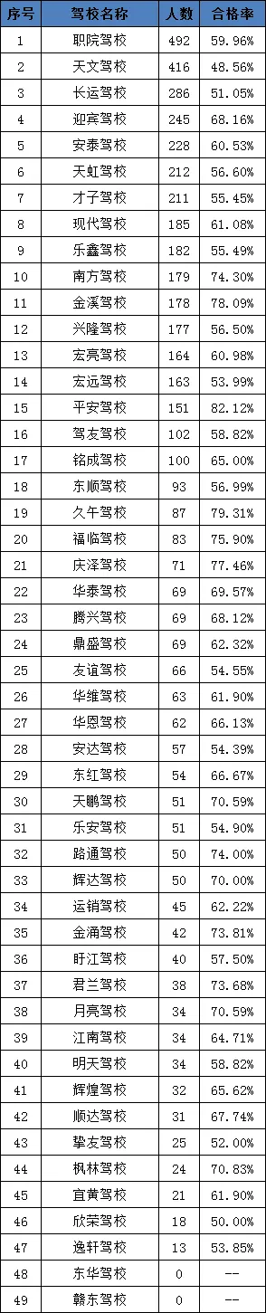 关于2025年12月抚州市驾驶人培训机构培训质量、考试合格率、交通违法率、交通肇事率等信息的公示