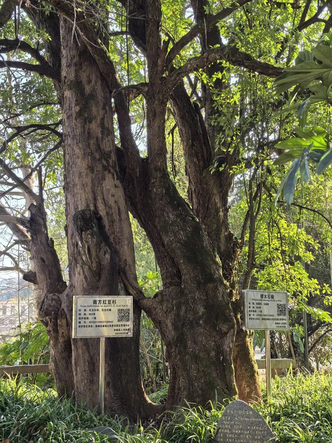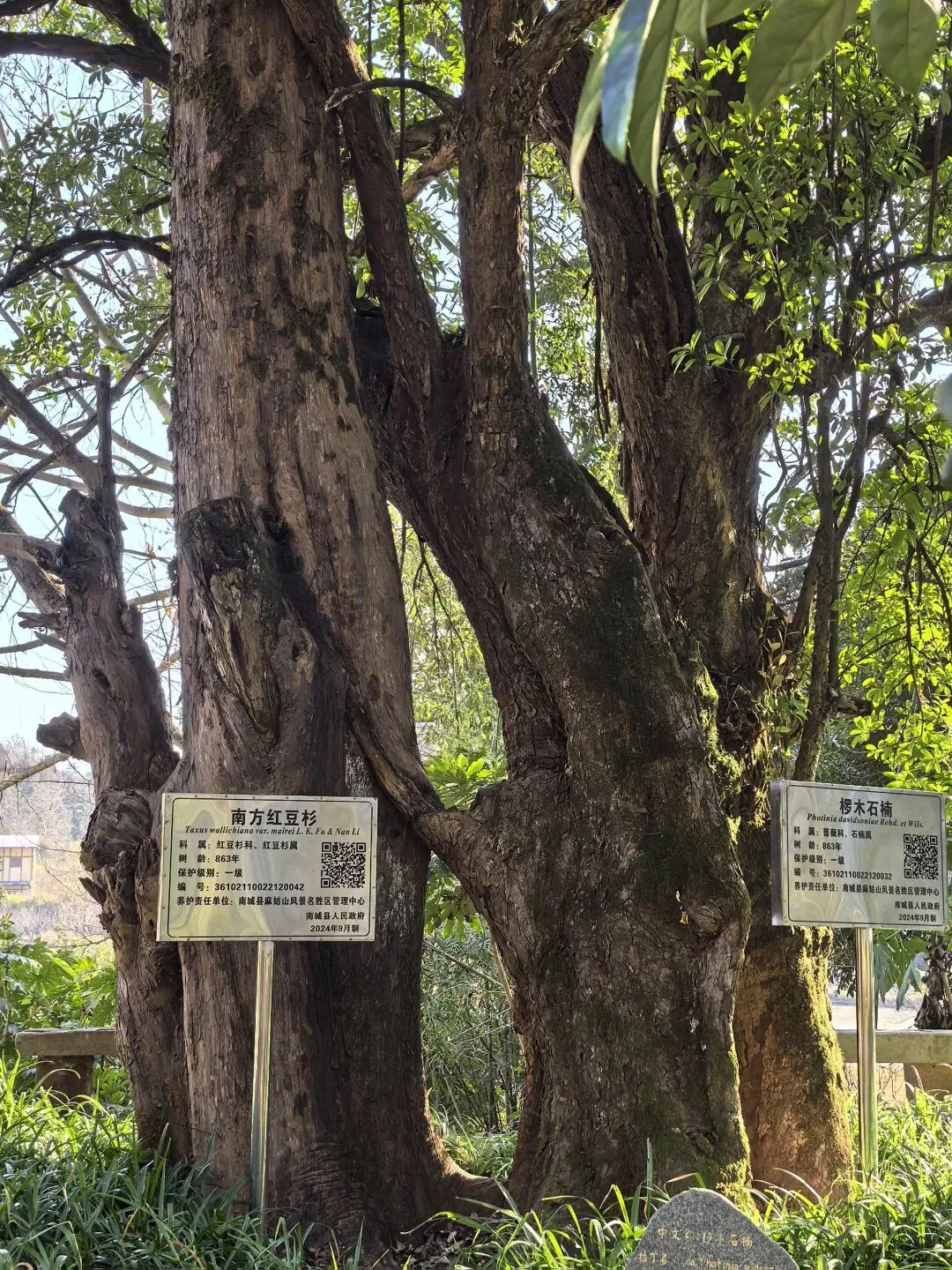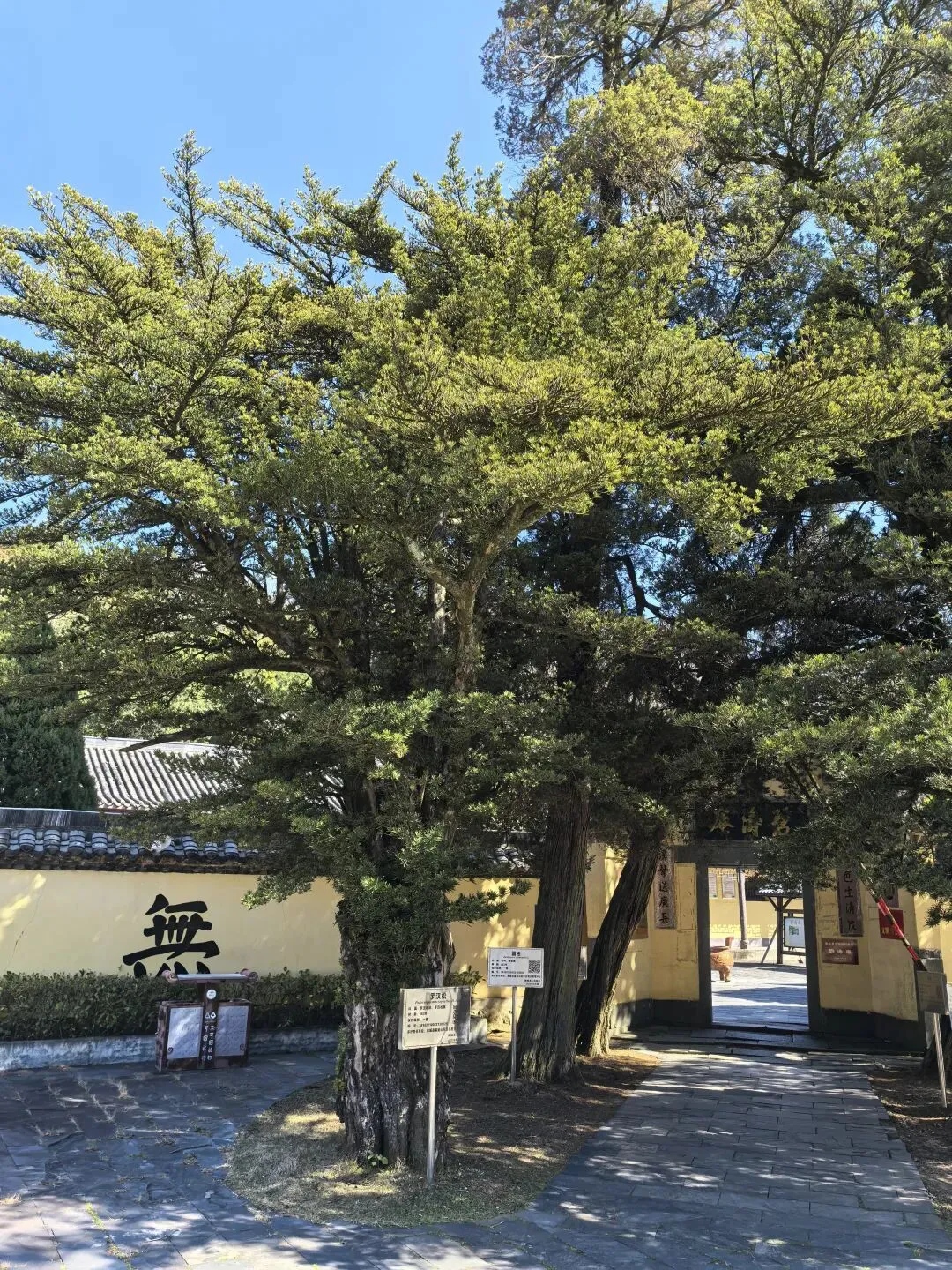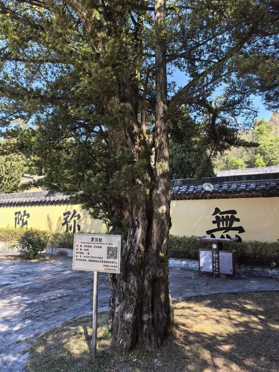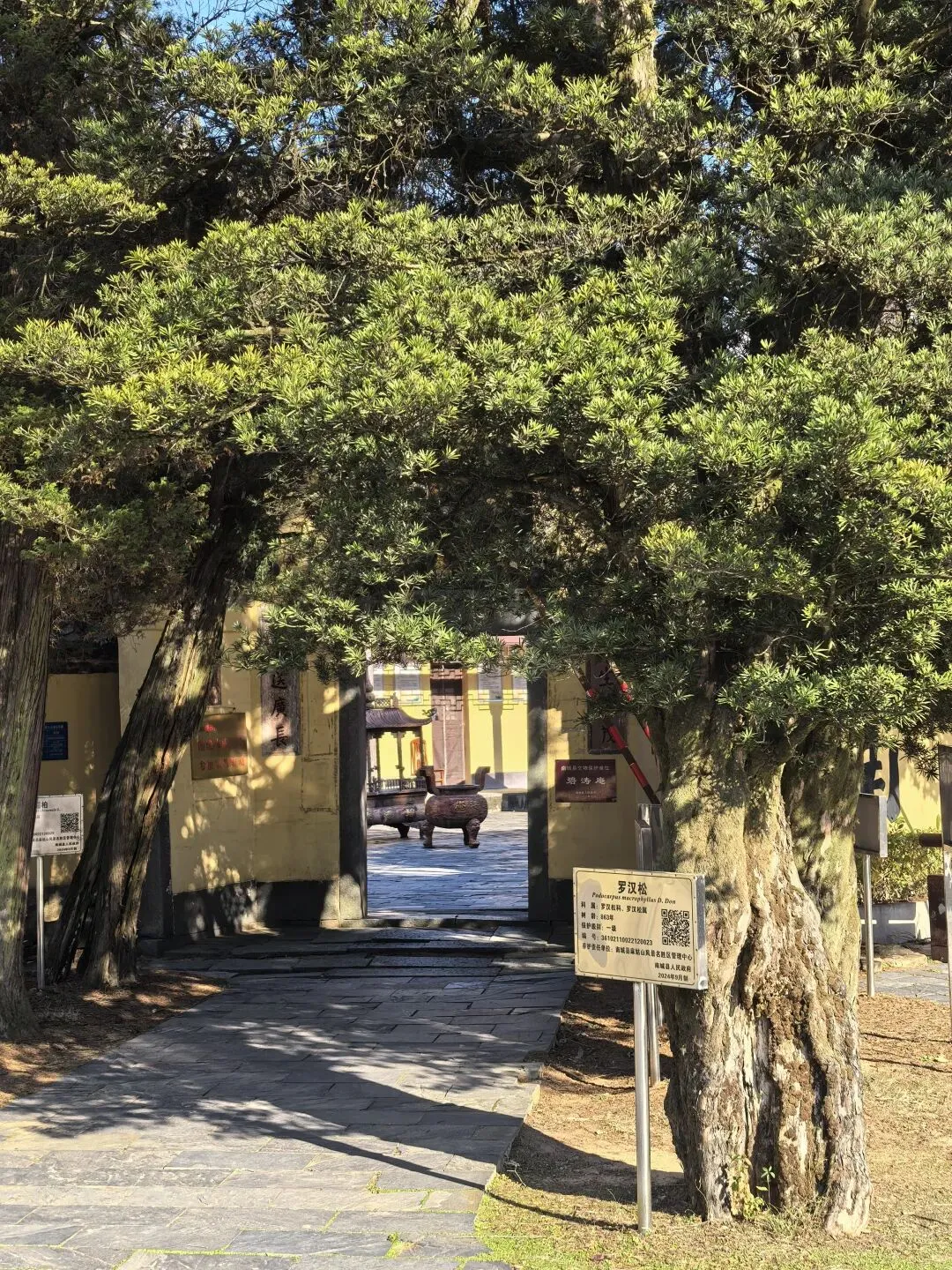 下了交通车,往里走,先是古寺碧涛庵,庵前及旁边有一批古树,银杏,石楠,红豆杉,园柏等,都是八百六十多岁了,可算是一景。