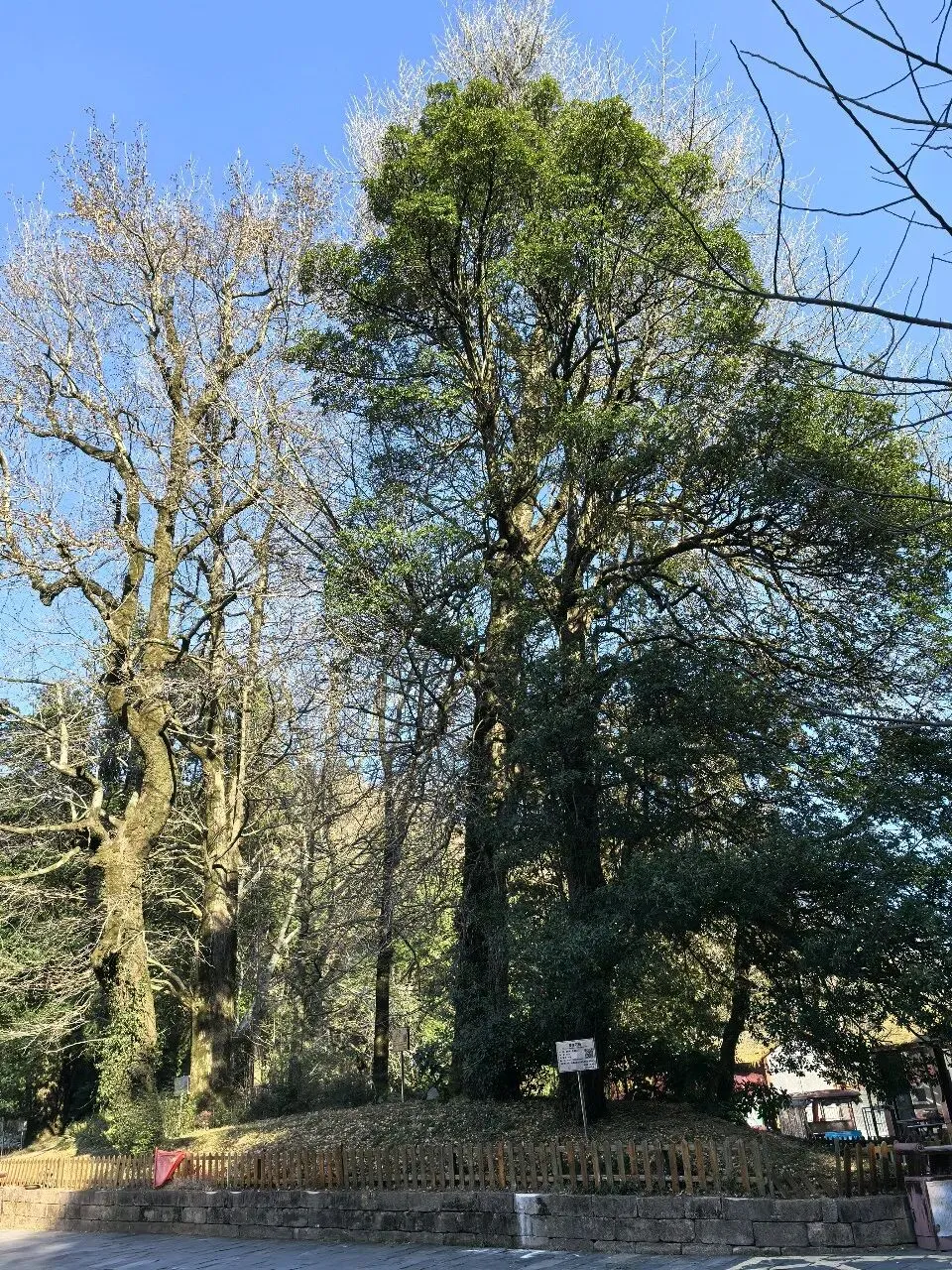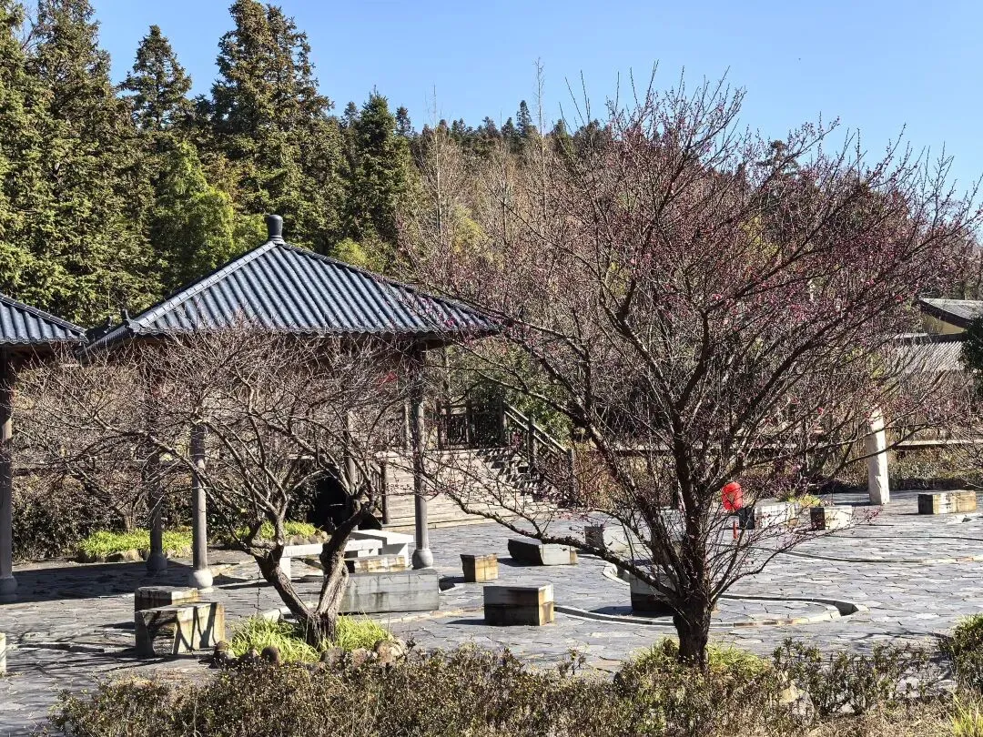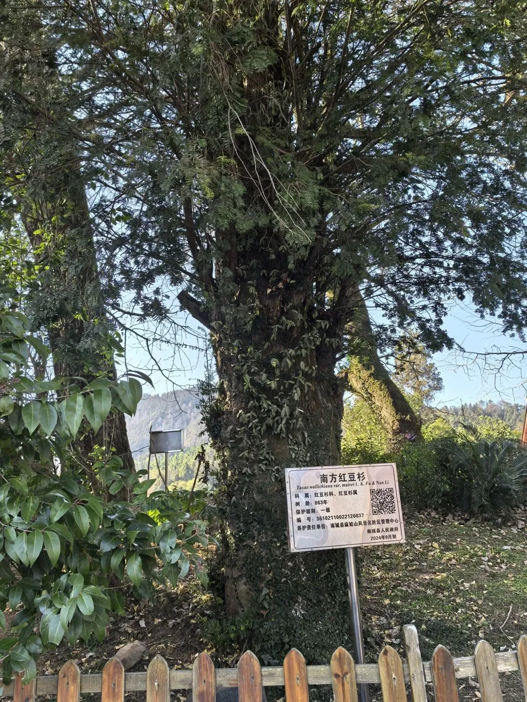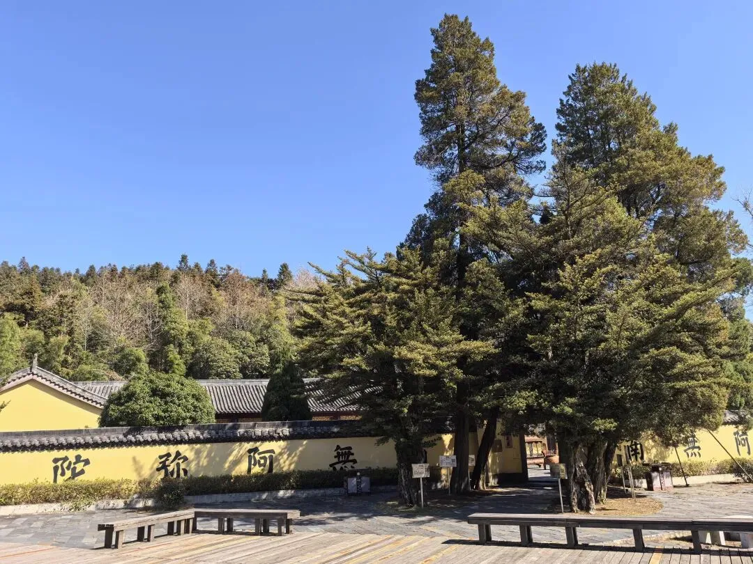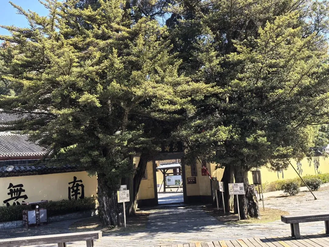 下了交通车,往里走,先是古寺碧涛庵,庵前及旁边有一批古树,银杏,石楠,红豆杉,园柏等,都是八百六十多岁了,可算是一景。