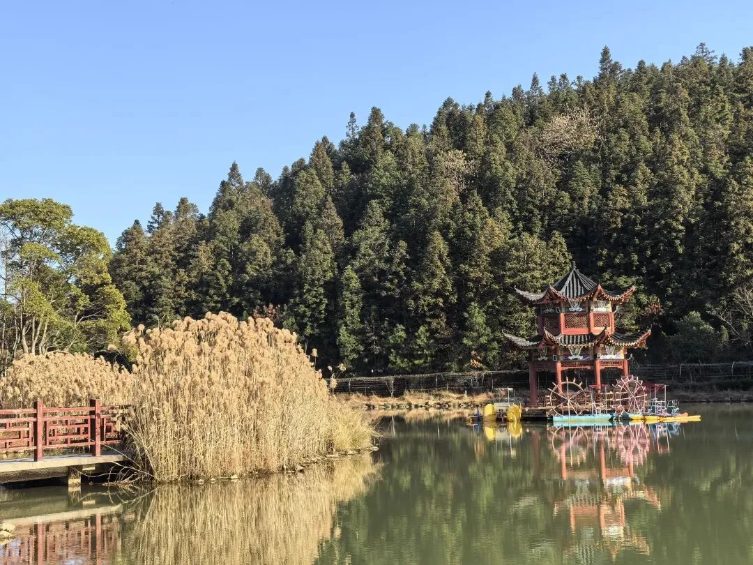 麻姑山景区也有交通车,往返车票22元,据说有7公里车程。这给我们一个错觉,以为从游客中心到景区,还有7公里的空路。步行单程一个半小时,当然有必要乘坐交通车。