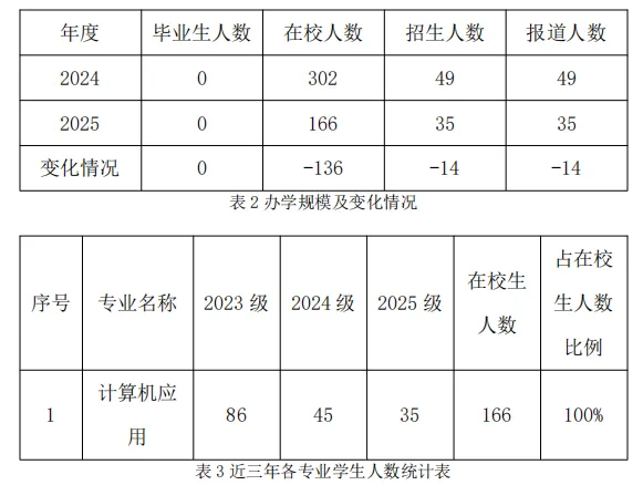 2025 年,职业教育领域风起云涌,改革与发展的浪潮奔腾不息。在这一时代洪流中,我校坚定不移地秉持“以质图强,育匠筑梦”的核心理念,以积极昂扬的姿态迎接诸多挑战,全方位、深层次地提升办学质量。 这一年,职业教育政策层面喜讯频传。《国家职业教育改革实施方案》持续深入推进,犹如一座明亮的灯塔,为我校的发展精准指引方向。该方案强调产教融合、校企合作的重要性,推动职业教育与产业需求紧密对接,促使我校积极探索更为有效的人才培养路径。同时,《职业教育产教融合赋能提升行动实施方案(2023—2025 年)》等一系列配套政策的出台,进一步明确了职业教育改革的具体任务和实施路径,为我校在专业建设、课程改革、师资队伍建设等方面提供了有力的政策支撑。 与此同时,产业升级的步伐显著加快。随着科技的飞速发展,新兴产业如人工智能、大数据、新能源等不断涌现,传统产业也在加速向智能化、数字化转型。这种产业变革对技术技能人才的规格、质量和结构都提出了全新且更高的要求。企业不仅需要学生掌握扎实的专业技能,还期望他们具备创新思维、团队协作能力以及快速适应新技术的能力。为顺应这一趋势,我校深刻认识到深化产教融合的紧迫性与必要性,积极主动地与行业领军企业开展合作,共同探索人才培养新模式。 在此背景下,我校全方位深化改革,不遗余力地强化内涵建设。在专业设置上,紧密对接产业需求,动态调整优化专业布局,同时对传统专业进行升级改造,融入新技术、新工艺、新规范。在课程体系改革方面,以职业能力为导向,构建基于工作过程的课程体系,邀请企业专家深度参与课程开发,确保课程内容与实际工作岗位需求高度契合。师资队伍建设上,通过“请进来,走出去”的方式,一方面邀请企业技术骨干和能工巧匠进校园担任兼职教师,带来行业最新技术和实践经验;另一方面,选派校内教师到企业挂职锻炼,提升教 本年度报告将如同一幅全景画卷,详尽且深入地呈现我校在办学条件、师资队伍、人才培养等诸多方面所取得的丰硕成果,以及在发展过程中所进行的深刻反思。期望以此报告回馈各界对我校的关心与关注,同时也为学校自身的持续发展提供清晰的脉络与参考依据,更为职业教育同行之间的交流互鉴搭建桥梁,共同推动职业教育事业迈向新的高度。 五育并举,培养全面发展的高素质技能型人才。《关于深化现代职业教育体系建设改革的意见》明确提出,要大力培育和践行社会主义核心价值观,健全德技并修、工学结合的育人机制,培养德、智、体、美等方面全面发展的社会主义建设者和接班人。学校坚持五育并举,深化融合育人,着力构建德智体美劳全面培养的教育体系,培养担当民族复兴大任的时代新人。 紧密贴合市场需求和产业发展新趋势,本年度对现有专业的课程体系进行全面调整与优化。构建起专业动态调整机制,每学年定期开展专业评估,确保专业设置始终契合行业发展需求。1.3 教学坚持理实结合,提高课程的实践性和针对性 学校在课程体系建设中,始终坚持理论与实践相结合的教学理念。学校通过实验、实训、课程设计等实践教学环节,让学生在实践中学习和掌握知识。此外,学校还鼓励教师开展科研活动,将科研成果转化为教学内容。通过这种方式,学校不仅提高了课程的针对性和实用性,还促进了教学与科研的良性互动。 在计算机应用专业的《Web 前端开发》或《动态网站开发》课程中,学生往往掌握了 HTML、CSS、JavaScript 等前端技术,但对后端开发、数据库设计、系统整体架构的理解不足,导致所学知识难以形成完整的应用能力。 通过开发一个校园活动报名系统,让学生在掌握前端技术的同时,学习并实践后端开发、数据库设计、系统测试与部署等技能,实现理实结合、提高实践性和针对性的目标。 学生从零开始完成一个完整的 Web 应用,涵盖了需求分析、数据库设计、前后端开发、测试部署等全流程,动手能力得到充分锻炼。 每个教学环节都针对学生在理论学习与实际应用之间的薄弱环节进行设计,例如数据库设计、后端 API 开发、系统集成测试等。 在完成项目的过程中,学生不仅掌握了专业技术,还培养了团队协作、沟通交流、问题解决等综合能力。• 真实场景驱动:校园活动报名是学生熟悉的场景,容易产生共鸣和学习兴趣。• 全流程覆盖:从需求分析到部署上线,覆盖了软件开发的完整• 理实深度融合:每个理论知识点都有对应的实践任务,真正做到学以致用。 进一步改善师资队伍结构,学校坚持面向全省公开招聘教师和面向应届毕业生招聘本科生,改善教师年龄结构和知识结构,充实专业教师队伍,为学校新专业和专业群建设打下人才基础。同时,教师参加校级培训 20 人次。建立完善的教师教学能力考核机制,将考核结果与职称评定、绩效奖励挂钩,极大激发教师提升教学水平的积极性。 学生社团是校园文化建设的重要载体,在全面提高学生素质、自治能力等方面发挥重要作用。截至 2025 年 12 月底,学校共有社团数 11 个,学生参与社团人数 103 人。2024-2025 学年,共开展大型社团活动 10 余项。 在 2024 - 2025 学年,学校体育社团积极发挥校园文化建设载体的作用,为丰富学生课余生活、增强学生体质,精心策划并组织了一场别开生面的趣味运动会。活动筹备阶段,体育社团