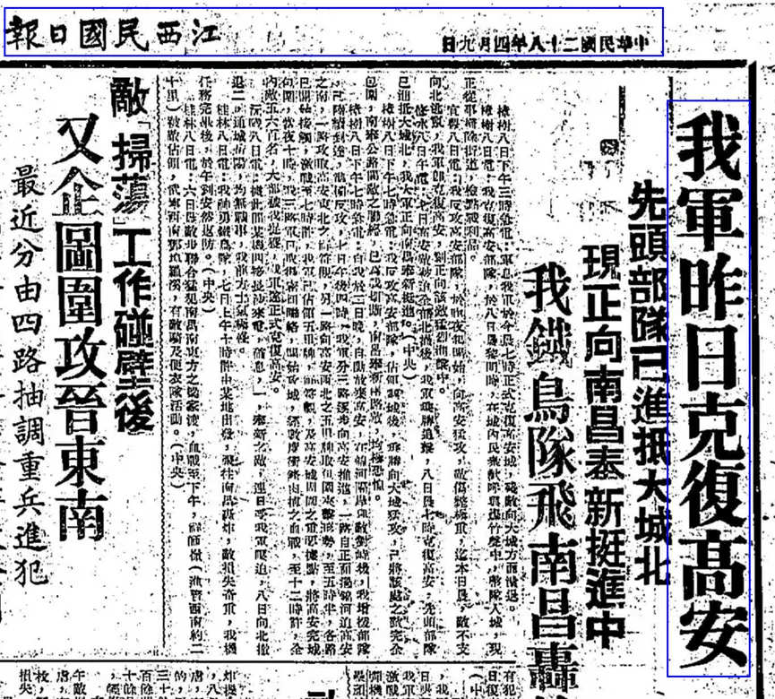 1939年4月9日《江西民国日报》克复高安报道