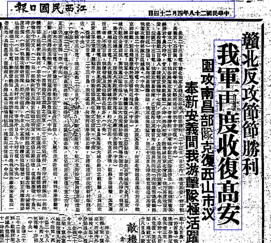 1939年4月24日《江西民国日报》再度收复高安报道