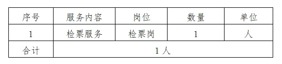 检票岗:女性,身高1.6米以上,50-55周岁,初中以上文化,有服务意识,五官端正、身体健康。