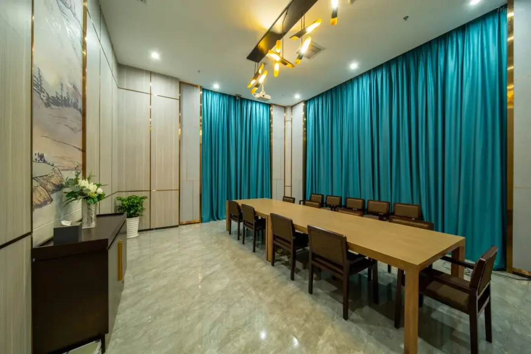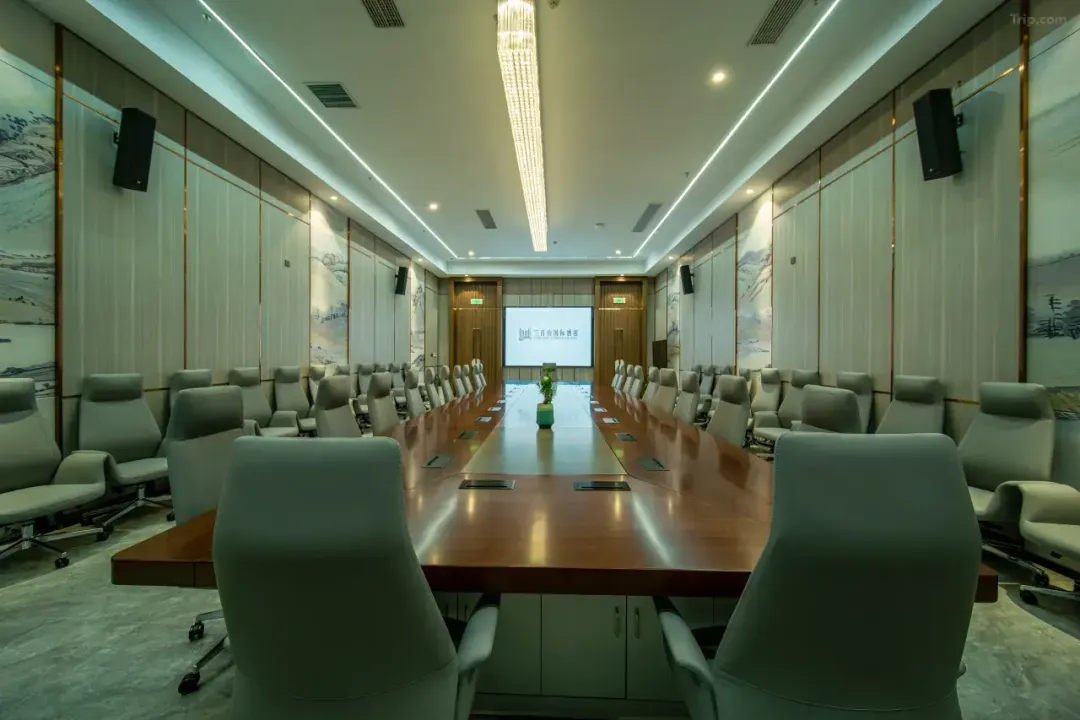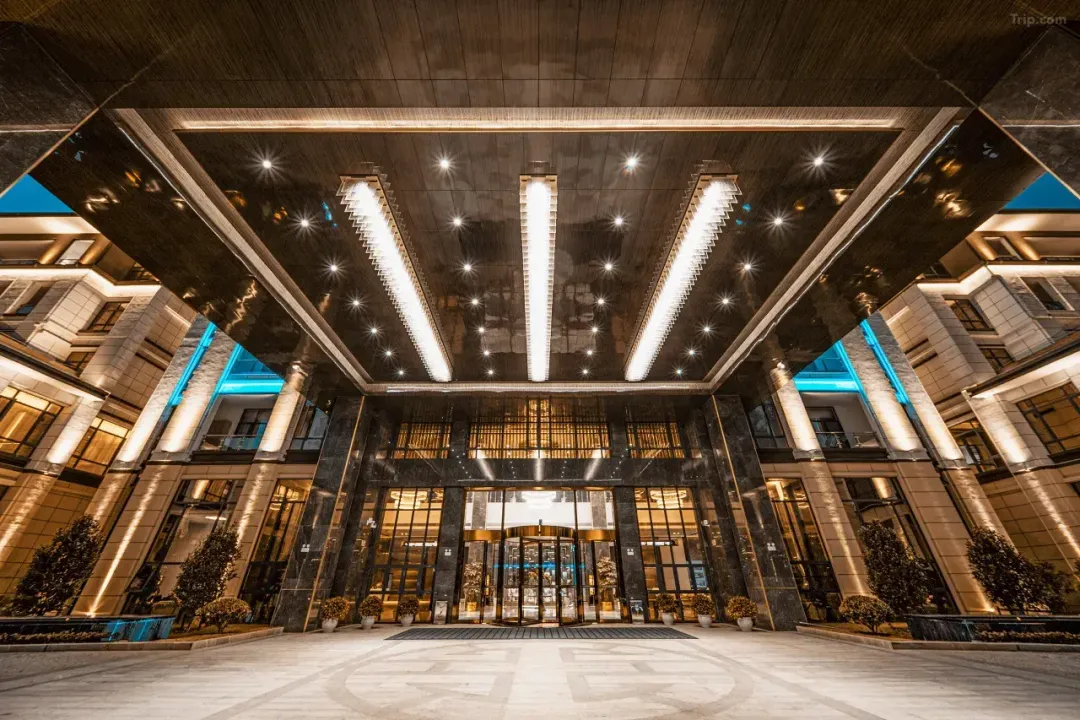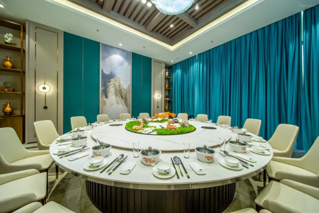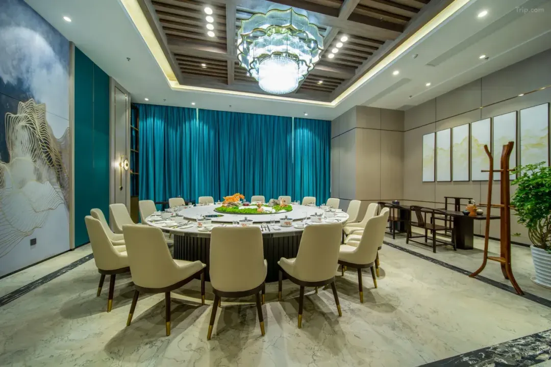 :拥有中餐厅、西餐厅和特色包厢,餐饮就餐总座位数 400 余位。设有可容纳 590 人的无柱宴会厅,还配有大、中、小会议室,可分别容纳 310 人、45 人、15 人。此外,酒店还配备了 spa 桑拿、沐足、健身中心、KTV、台球室等休闲娱乐设施,室外有 9 个户外休闲泡池,同时拥有 20 多个大巴停车位及 400 个小车停车位。