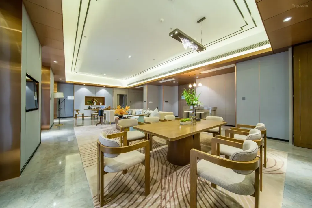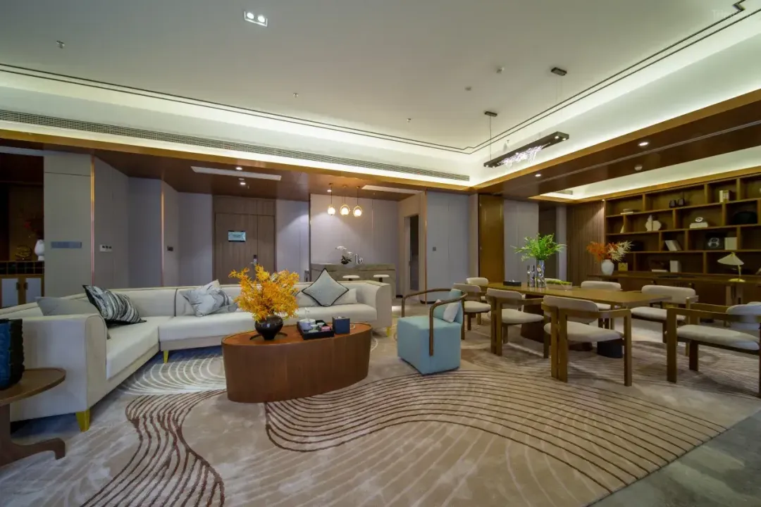 :融入了新中式设计元素,呈现出现代轻奢的风格,将传统中式元素与现代设计理念相结合,营造出典雅而舒适的氛围。