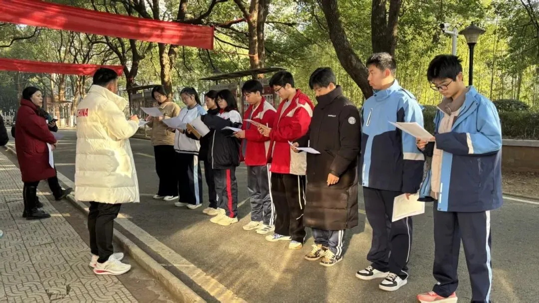 1月14日上午大课间,南昌市东方明珠高级中学阶梯教室气氛热烈,我校在此举行2025年12月份示范寝室表彰仪式,为首批14个示范寝室颁发红旗,以表彰先进、树立榜样,推动校园文明宿舍走深走实。副校长谢才有为寝室长颁发示范寝室流动红旗,学工处主任邬文涛主持表彰仪式。
