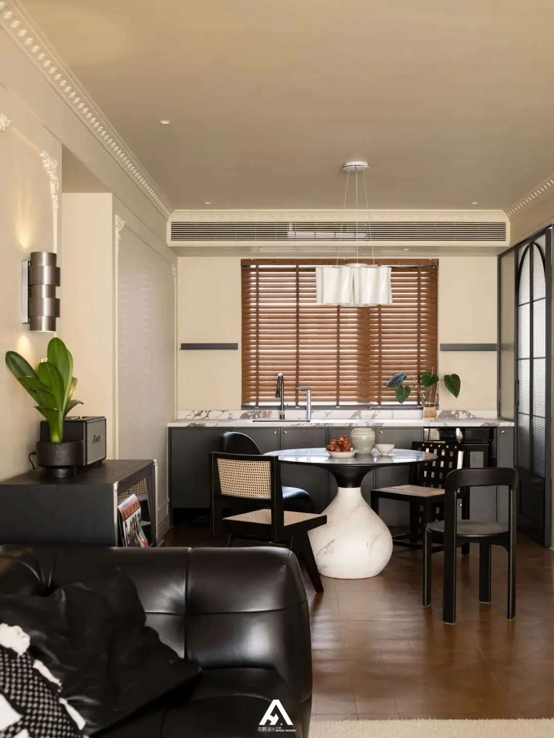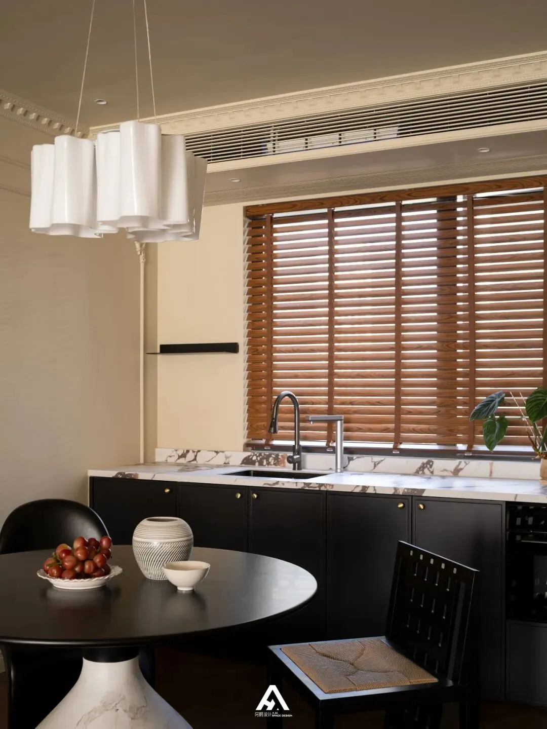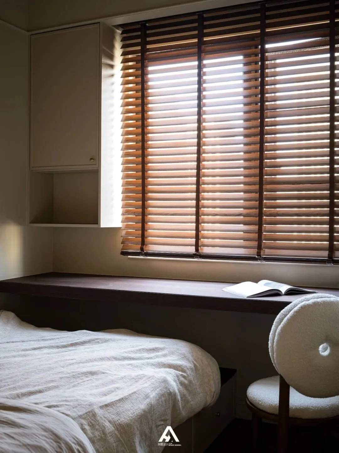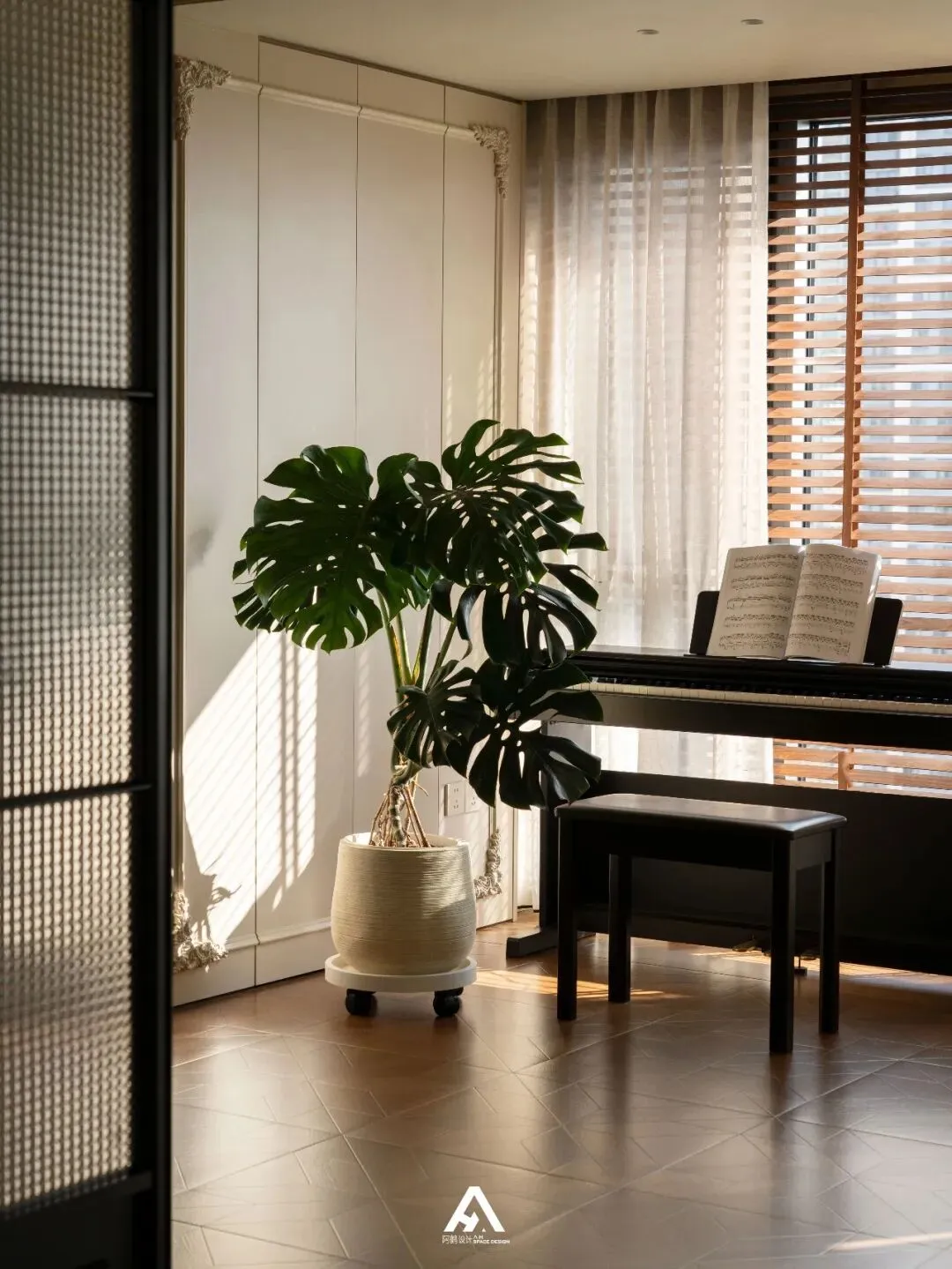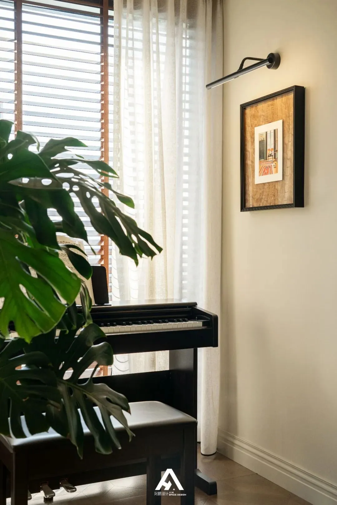 交织的光和影透过百叶窗的缝隙捻成细腻的色调,透着自然气息的天然材料,每一处藏匿着细节的分寸感。