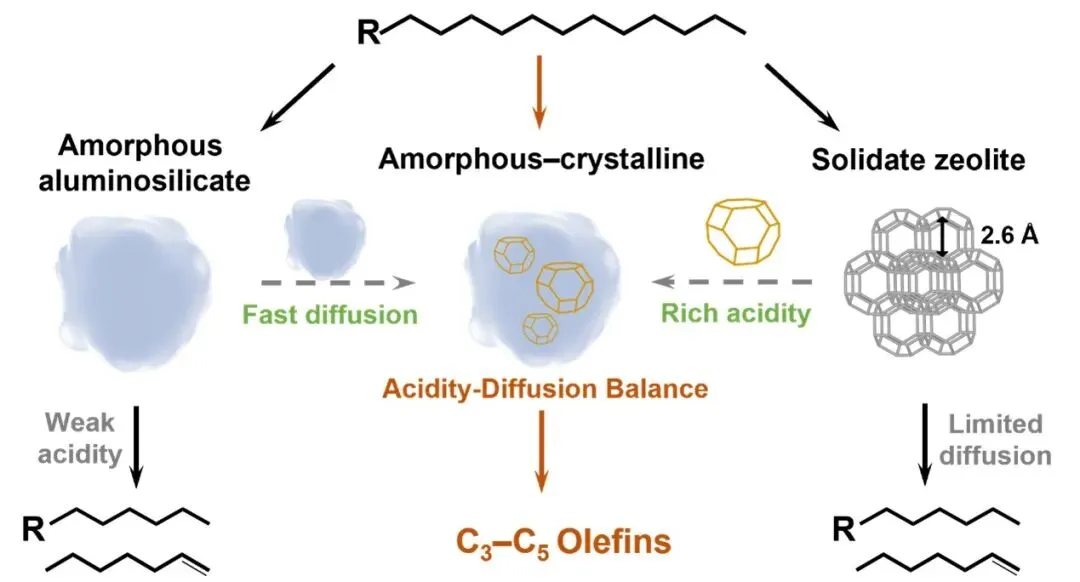 不同固体酸催化剂催化聚烯烃裂解的示意图。图片由研究团队提供
