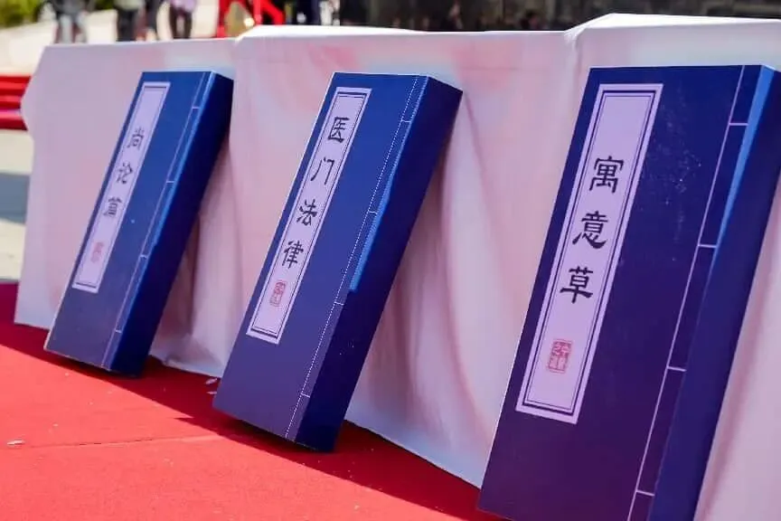 庆典上,喻嘉言十六代传人喻小勇等献礼嘉宾,恭捧江南圣医喻嘉言毕生心血所著的《寓意草》《尚论篇》《医门法律》三部典籍,郑重供奉于祭台,随后将盛有地黄、当归、甘草的礼篮敬献于圣医铜像前。这三味药材分别对应着喻嘉言三部著作的精髓——地黄寓“扶正固本”,当归契“辨证立方”,甘草彰“平衡守机”。