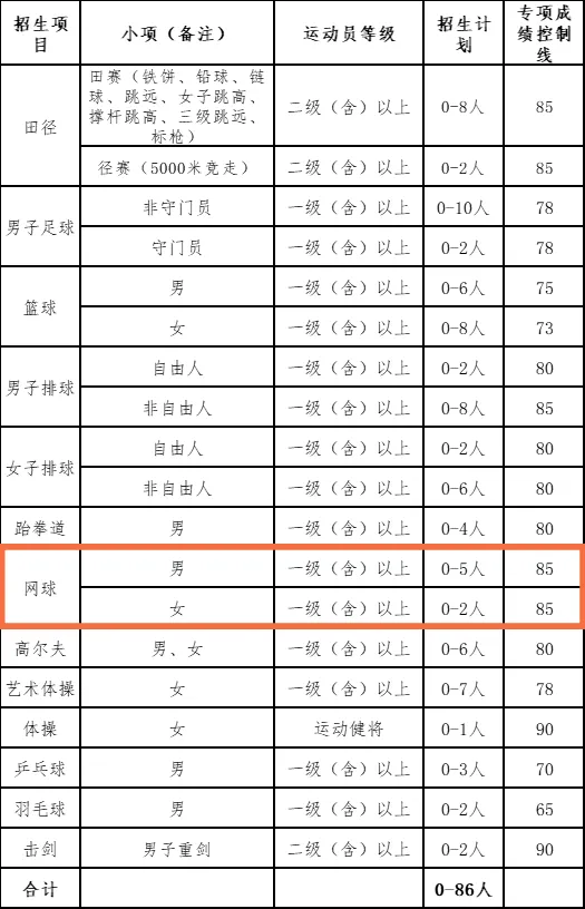 一、招生人数:网球男子5人,女子2人