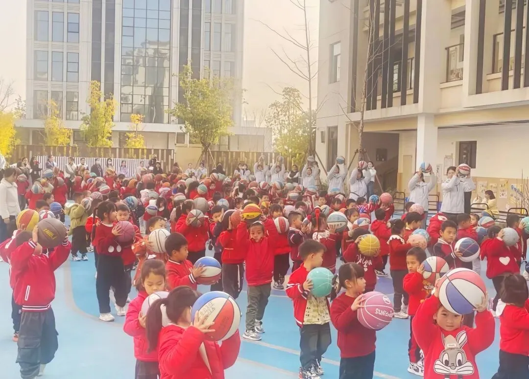 童韵跃动,球操焕彩。紧接着,中、大班幼儿篮球操精彩亮相。孩子们随着音乐的节奏运球、传球、变换队形,一举一动尽显童真趣味,亦流露运动协调之美,现场掌声阵阵,也为今日沉浸式教研拉开了序幕。