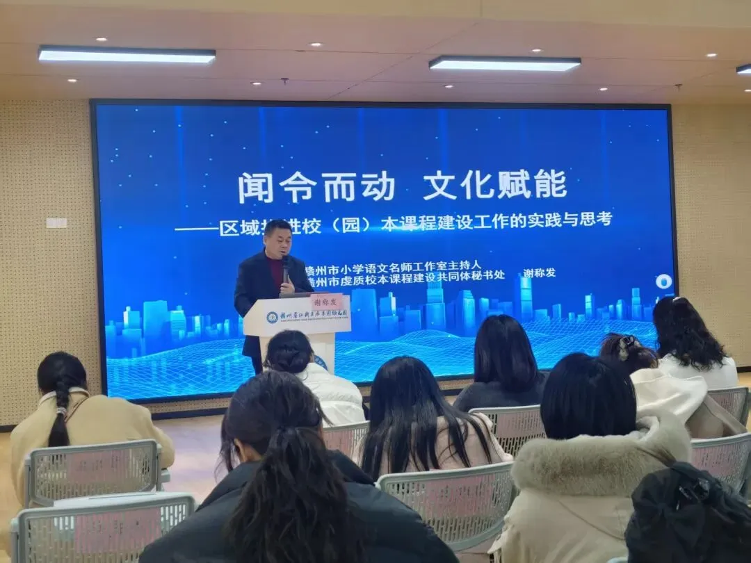专家明路径,聚力促成长。赣州市虔质课程馆馆长谢称发带来《文化赋能:幼儿园虔质园本课程发展的实施路径》专家讲座。谢馆长结合丰富实践经验,深度剖析文化赋能对园本课程提质的核心意义,从课程理念升级、教师专业成长、家园社协同等维度,为园本课程的高质量发展锚定了前行方向。