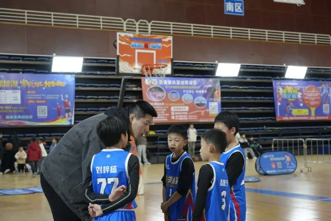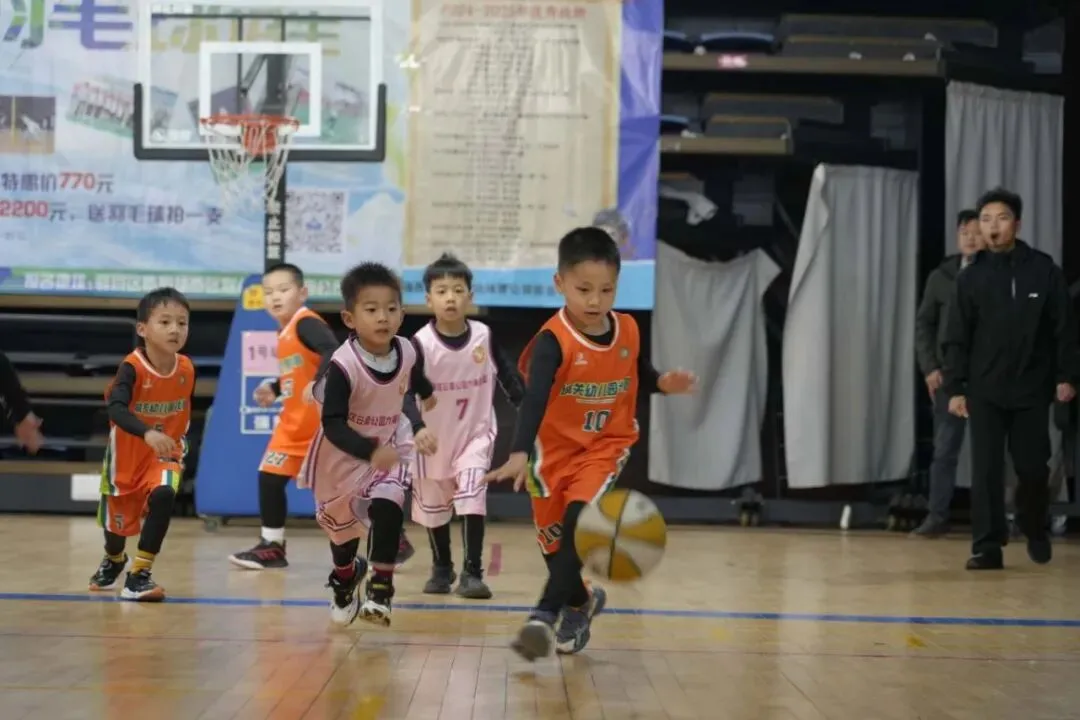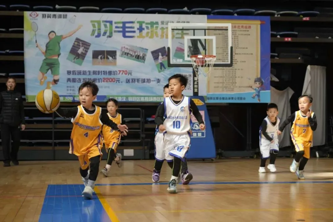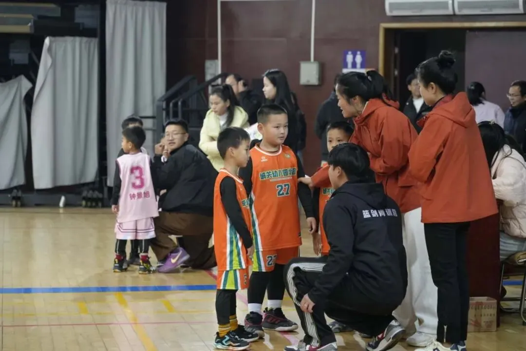 幼儿园组的比赛场地,可能是整个联赛中最富童趣也最出人意料的地方。这里的篮筐略低,篮球稍小,但孩子们的热情却丝毫不减,偶尔上演令人捧腹又感动的场景。篮球像颗跃动的音符,孩子是努力合拍的追光者,跌倒爬起,奋力投球,展现出超越年龄的专注与拼劲。正如一位幼儿教练所说:“他们可能记不清比分,但会永远记得第一次把球投进篮筐的感觉。” 这种纯粹的运动初体验,正是体育精神最本真的起点。