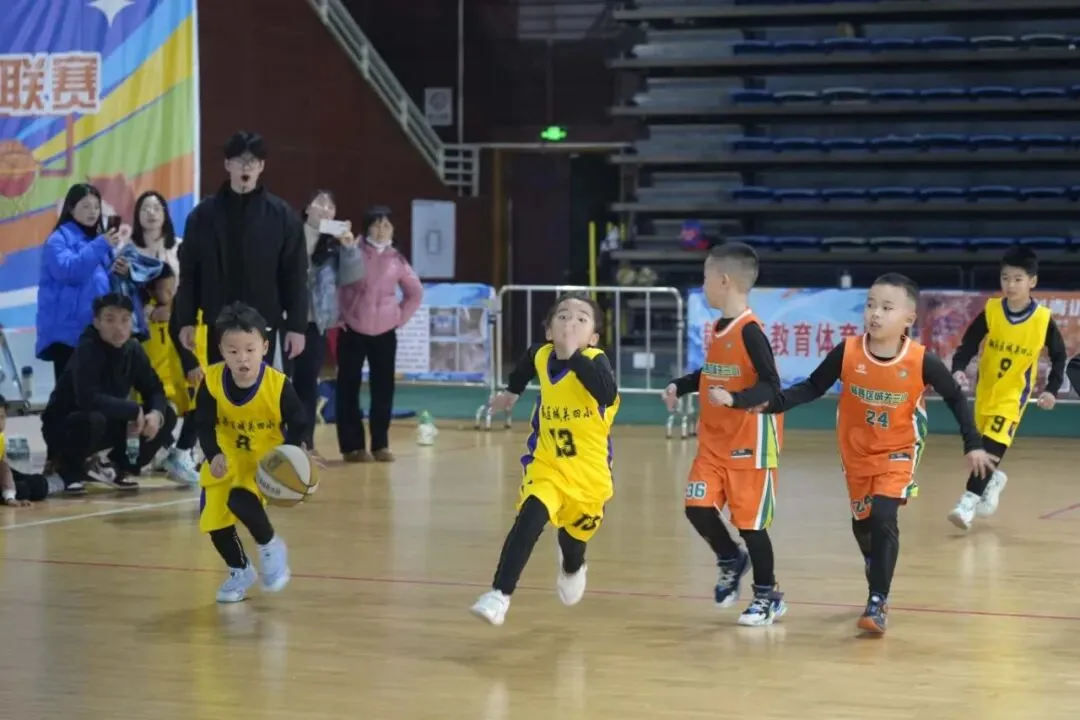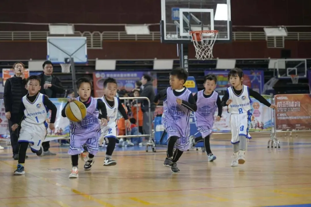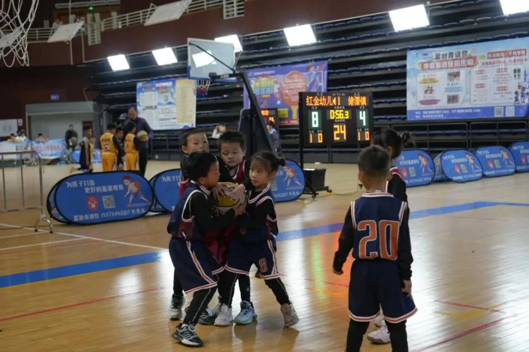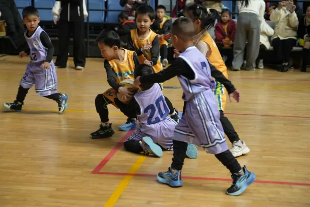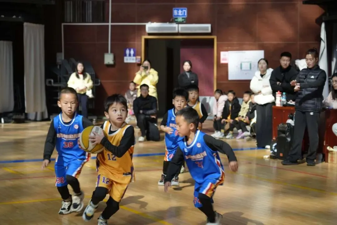 幼儿园组的比赛场地,可能是整个联赛中最富童趣也最出人意料的地方。这里的篮筐略低,篮球稍小,但孩子们的热情却丝毫不减,偶尔上演令人捧腹又感动的场景。篮球像颗跃动的音符,孩子是努力合拍的追光者,跌倒爬起,奋力投球,展现出超越年龄的专注与拼劲。正如一位幼儿教练所说:“他们可能记不清比分,但会永远记得第一次把球投进篮筐的感觉。” 这种纯粹的运动初体验,正是体育精神最本真的起点。