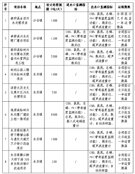 为确保污水处理站(厂)的水污染源自动监控设施能满足环保部门监管要求,保障数据准确有效。现决定对南田溪生活污水处理项目等8个项目的水污染源自动监控设施运维管理进行比选,择优选定运维管理单位。