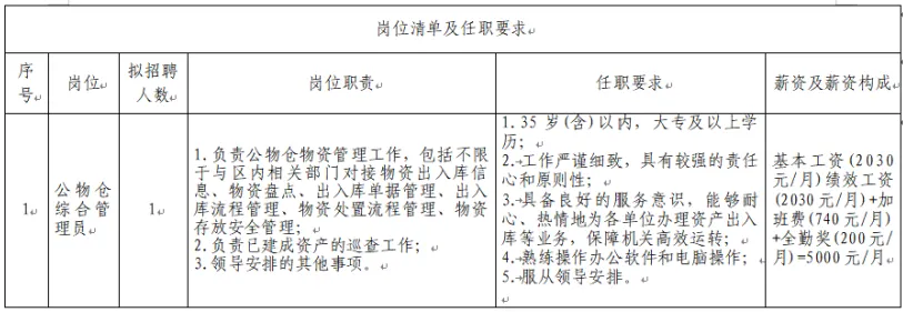 因工作需要,江西省欧潭人力资源集团有限公司招聘公务仓综合管理员1名,外派至赣州宝瑞新能源科技开发有限公司工作,现将有关事项公告如下:
