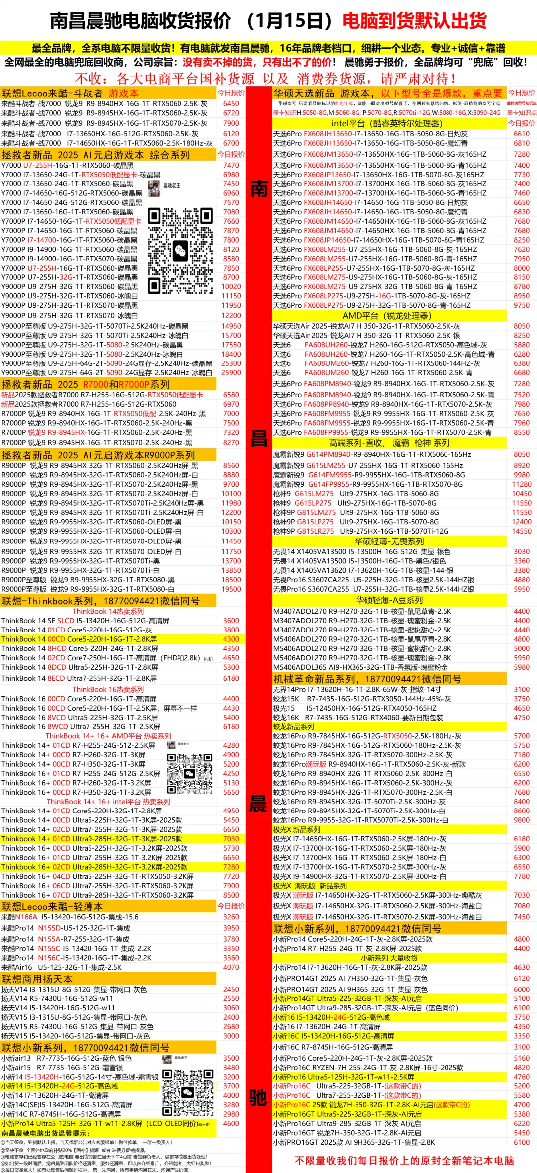 南昌晨驰电脑回收报价更新(1月15日)