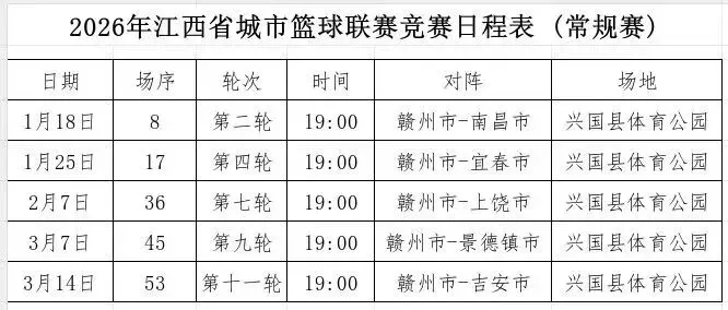 运动赣鄱,活力江西。一场汇聚江西全省篮球精英的盛宴即将拉开帷幕——2026年江西省城市篮球联赛正式进入开赛倒计时!1月18日,赣州VS南昌,将在兴国县体育公园火热开赛,一场速度、激情与荣誉的篮球风暴正在汇聚能量,等待爆发。
