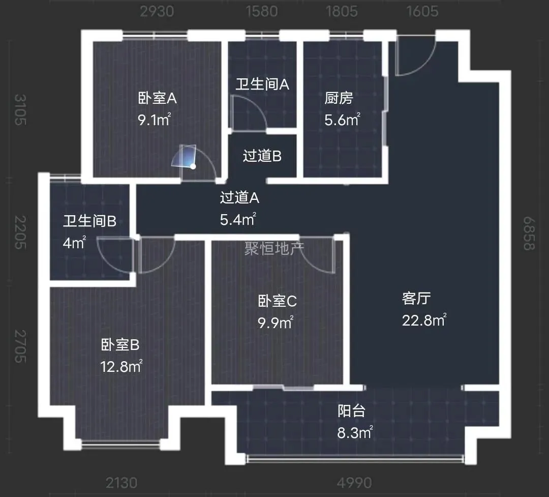 户型超正!两房朝南一房朝北,三个房间衣柜全配齐,每个空间都敞亮通透!