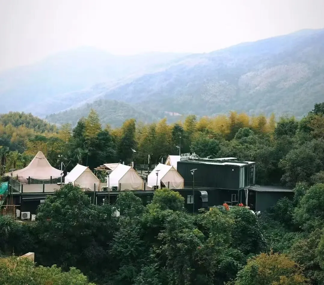 驱车从市区出发,半小时即可到达这片森林秘境。你无需负重前行,营地已为你备好一切:设计感十足的帐篷酒店、宽敞的露营天幕,甚至还有无边泳池可以眺望群山。