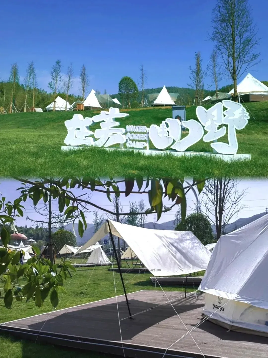 踏入营地,仿佛闯入一片与世隔绝的桃源。竹林掩映,清溪蜿蜒,阳光透过竹叶洒下粼粼光斑。这里以“乐野主义·美学营地”为主题,让你无需为繁琐准备操心——帐篷、美食、打卡点,一应俱全。
