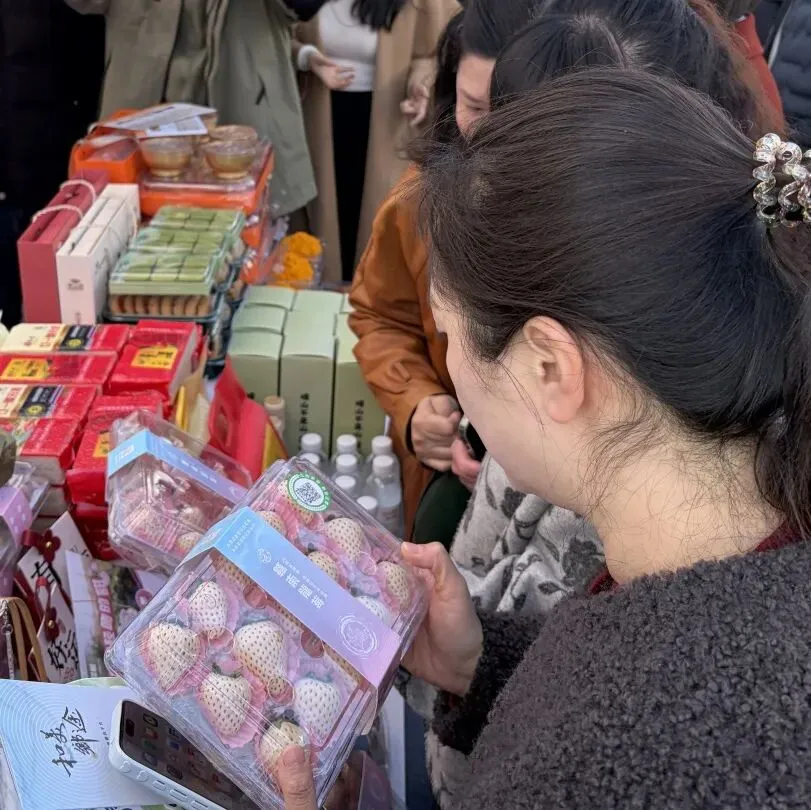赣州七鲤古镇的央企助农现场,最近被一款白草莓彻底点燃!展台前围得水泄不通,咨询声、下单声此起彼伏,首批鲜货刚上架就被抢购一空,全程仅用 1 小时,不少没抢到的市民直呼 “太可惜”,吃过的人更是连连赞叹:“从来没吃过这么香的草莓,甜得纯粹还带股独特果香!”
