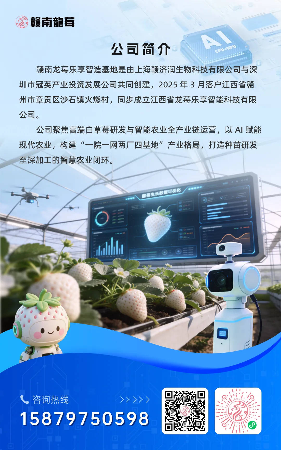 依托 AI 新农人数字底座,从土壤墒情、温湿度调控到病虫害监测,全流程智能化管理,再加上独创的高温育苗技术,让每一颗龙莓都能在赣南红土地上茁壮成长,甜度稳定在 12 度以上,果香浓郁又纯粹。