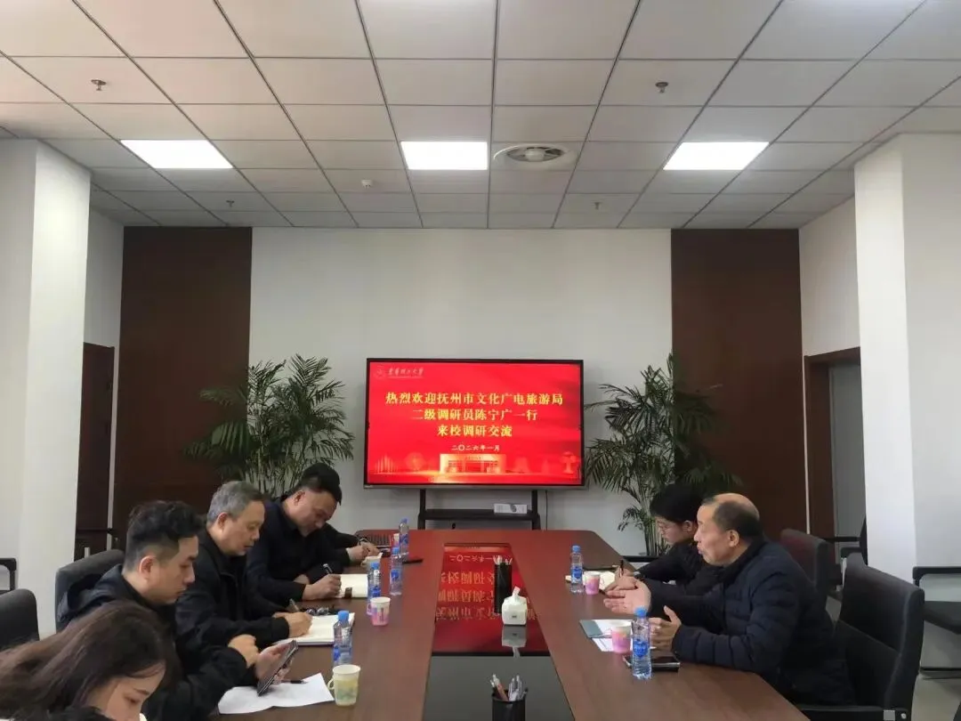 2026 年 1 月 14 日,抚州市文化广电旅游局二级调研员陈宁广一行 8 人莅临我校地质博物馆开展考察调研。此次活动是地方文旅部门与高校文博单位深化交流的重要举措,核心围绕抚州市自然科学博物馆布展工作的实际需求,旨在通过实地考察借鉴我校地质博物馆在展区规划、藏品展陈、科普传播等方面的成熟经验,为地方自然科学博物馆建设注入专业力量。我校地质博物馆陈少华老师全程负责陪同讲解与交流对接,以专业视角为考察团提供详细介绍,助力调研工作高效推进。
