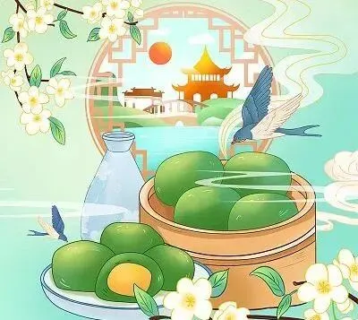清明时节,江南一带有吃青团子的风俗习惯。青团子是用一种名叫“浆麦草”的野生植物捣烂后挤压出汁,并与水磨纯糯米粉拌匀糅合,制作成的团子。