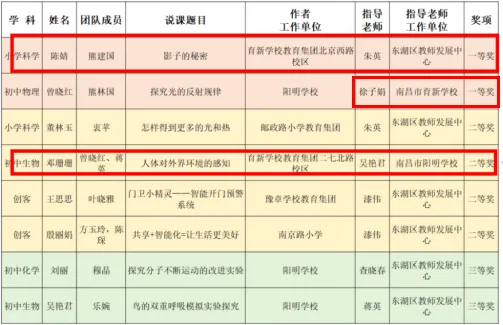 近日,南昌市教育局公布2023年南昌市中小学实验教学说课。活动评比结果,我校参赛的两位老师均获奖。其中陈婧老师获小学一等奖,徐子娟老师指导的初中物理说课获一等奖,邓珊珊老师获初中生物二等奖。