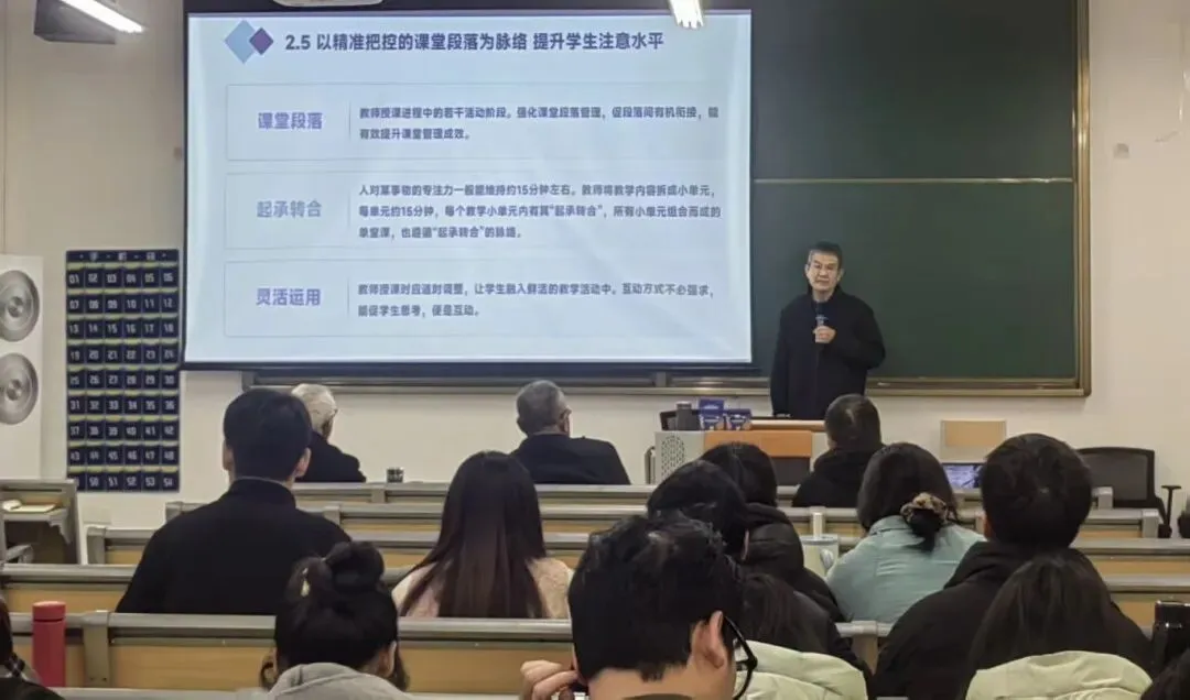 精研管理,构建高效课堂新生态,课堂管理是教学质量的重要保障。在有效课堂管理策略专题培训中,唐铸文教授分享了兼具科学性与实操性的管理方法。培训强调,职教课堂管理需立足学生职业发展需求,以平等民主的师生关系为纽带,以学生中心的小组展示为核心,以精彩纷呈的内容讲授为基石,通过师生共同制定明确可操作的课堂规则,创设科学积极包容的学习环境,让学生在规则意识培养中提升职业素养。针对课堂中的常见问题,唐铸文教授提出“正向激励优先”原则,指导教师运用具体、情境化的表扬技巧捕捉学生闪光点,同时通过“冷静应对—原因分析—精准施策”的步骤科学处理问题行为。
