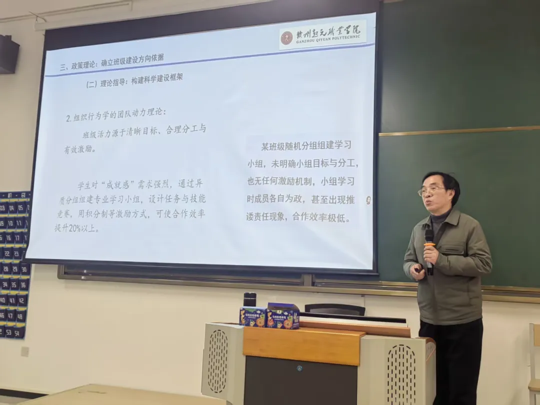 郭永生教授针对高职班级建设专题做了详细分享。他从专业导师、任课教师视角,围绕核心理念、实践路径等七大板块展开讲解。明确班级建设需坚持以生为本、引导赋能,厘清辅导员、班主任、专业导师、任课教师的角色边界,构建“课、点、线、面”协同育人体系。同时强调要依托专业特色推进差异化建设,搭建三类高效学习小组,规避建设误区,凝聚育人合力,为高职班级高质量建设提供了清晰指引。
