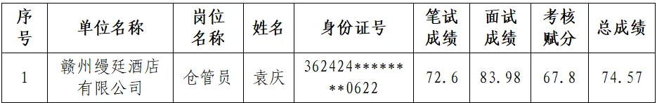 公示期结束后将由第三方招聘服务机构(江西省欧潭人力资源集团有限公司,咨询电话:0797-8371083)通知体检和背景调查等相关事宜。