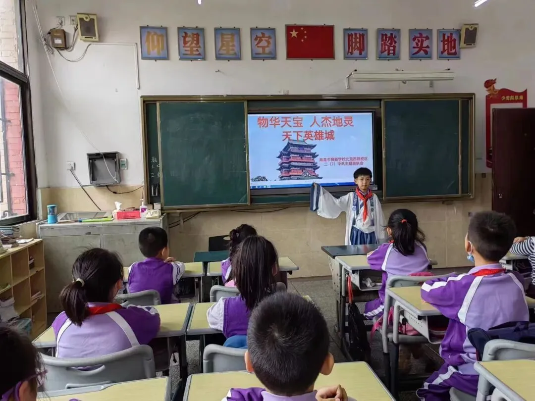 首先,学校利用晨会时间,选出优秀少先队代表“诵千古诗词”,带领全校师生共同领略南昌恢宏厚重、古朴稳健的豫章故郡风采。