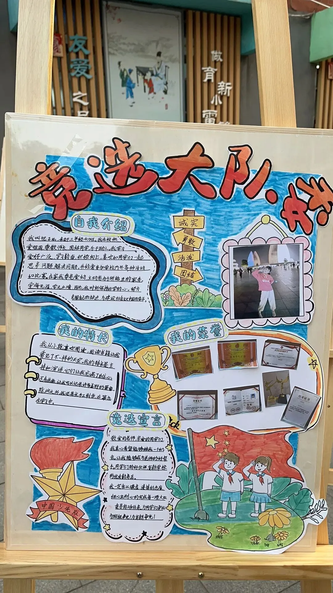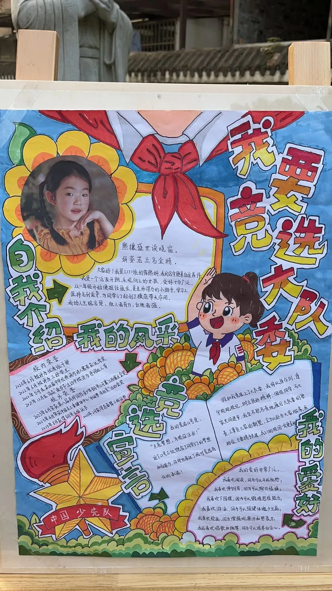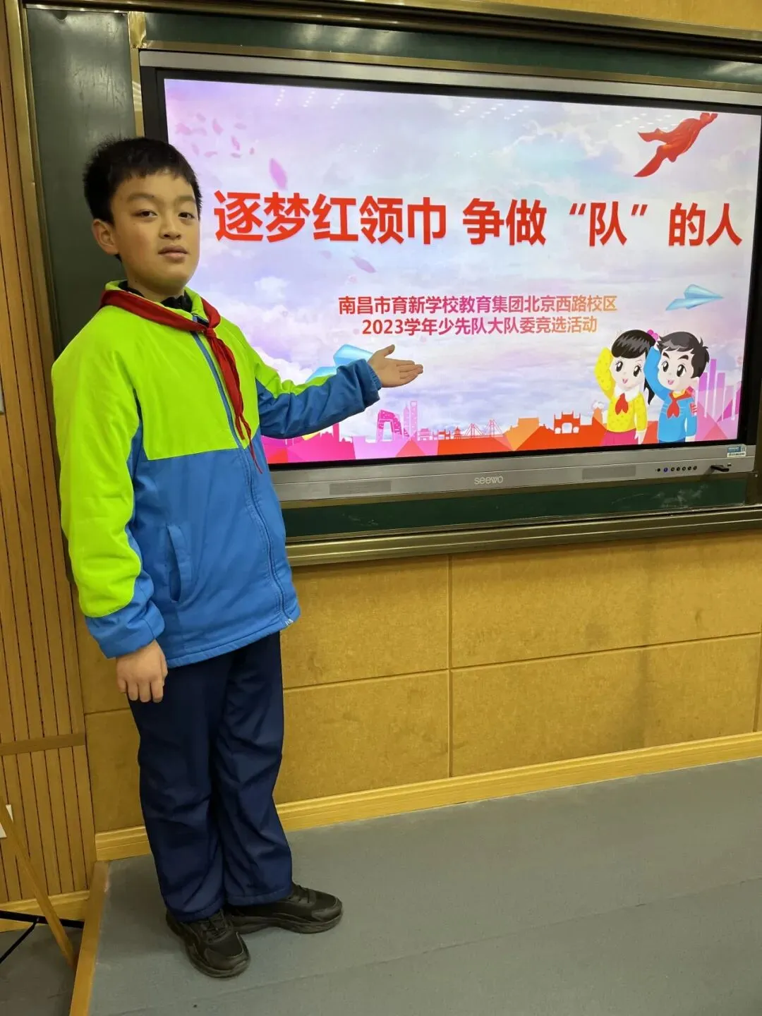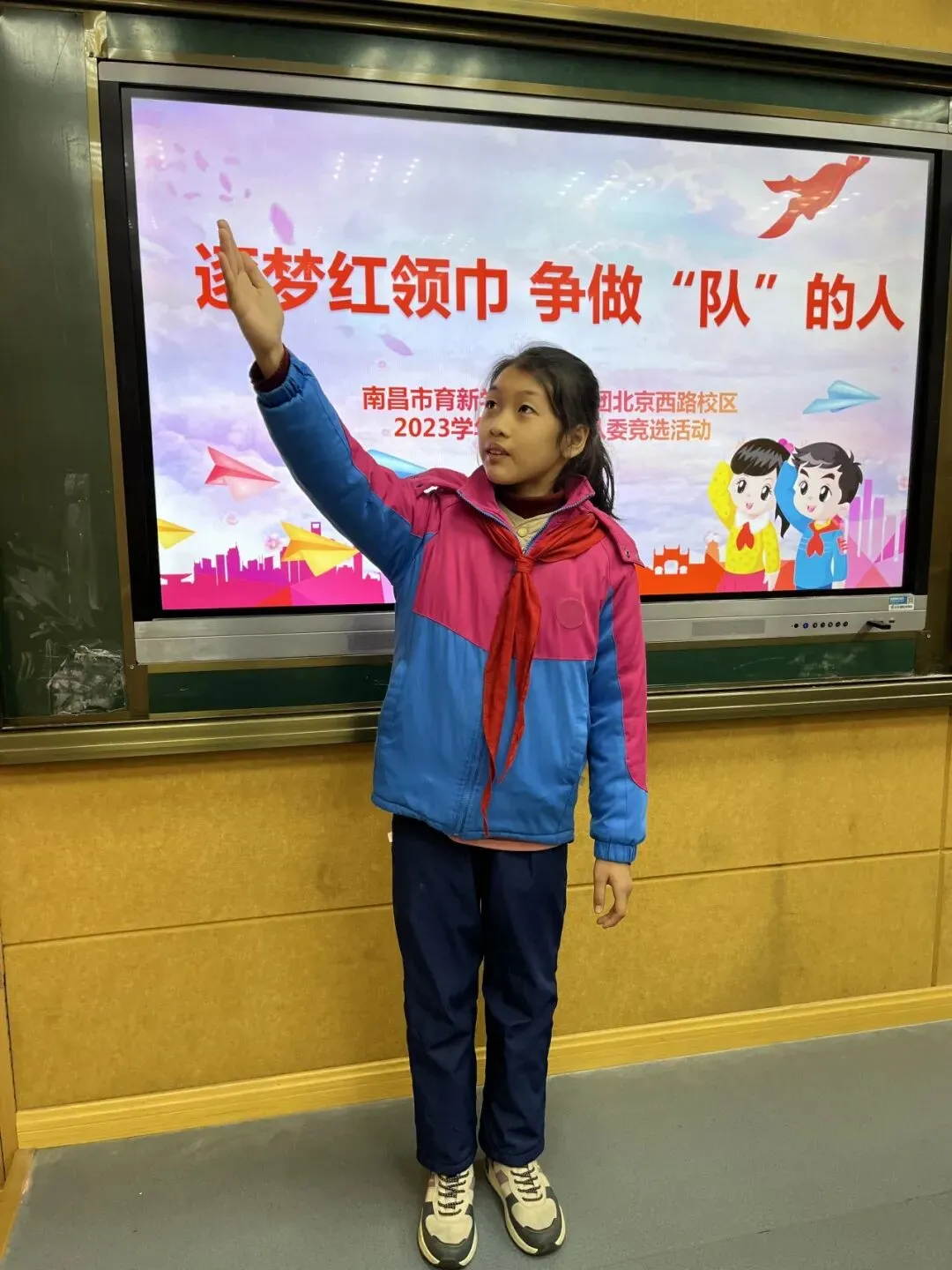 火红的队旗高高飘扬,鲜艳的红领巾系满理想。为树立少年儿童共产主义远大理想,践行少先队员的光荣使命,进一步加强学校少先队组织建设,南昌市育新学校教育集团北京西路校区开展大队委员竞选活动。本次竞选由三至四年级各班推选优秀少先队代表,现场展示制作的竞聘海报,从自我介绍、才艺展示、六知六会答题三个方面进行全面考核,并由红领巾“小评委”现场打分。
