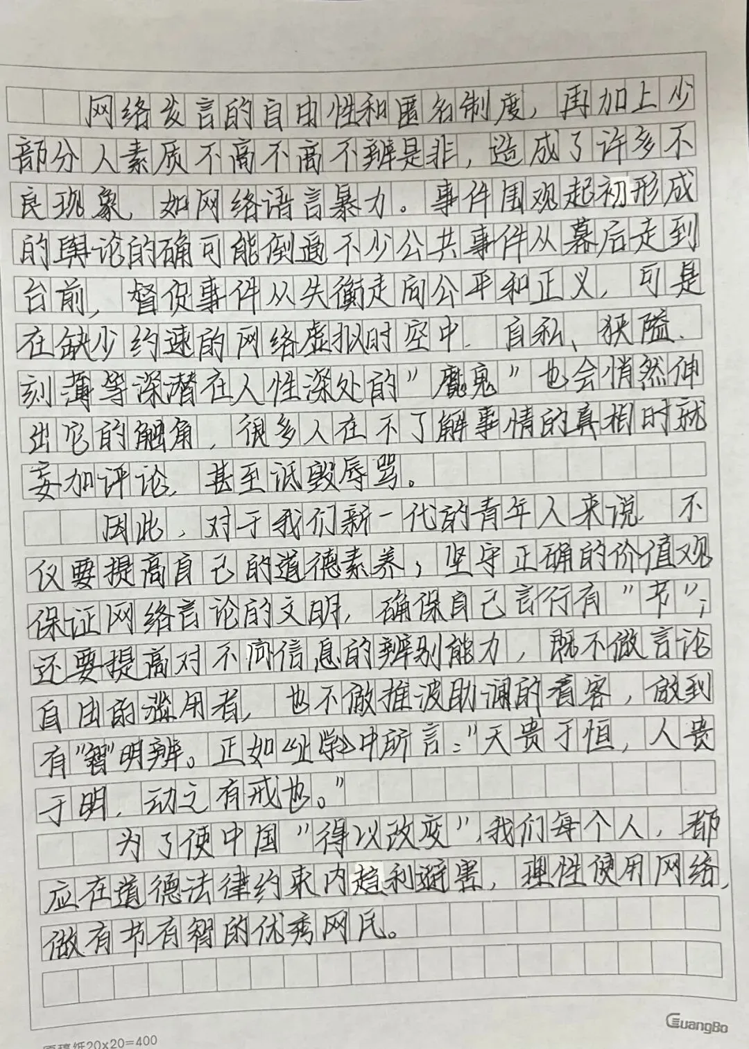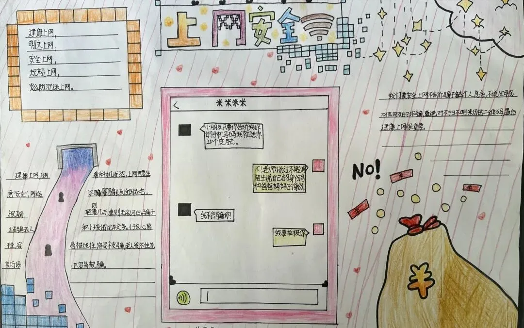 网络安全,你我共建。同学们通过创作一幅幅主题鲜明、图文并茂的精美手抄报,宣传增强网络文明素养,遵守互联网法律法规和网络文明规范,自觉依法上网、文明上网、绿色上网,不浏览不健康的网络页面和信息,不造谣、不信谣、不传谣等方面内容。