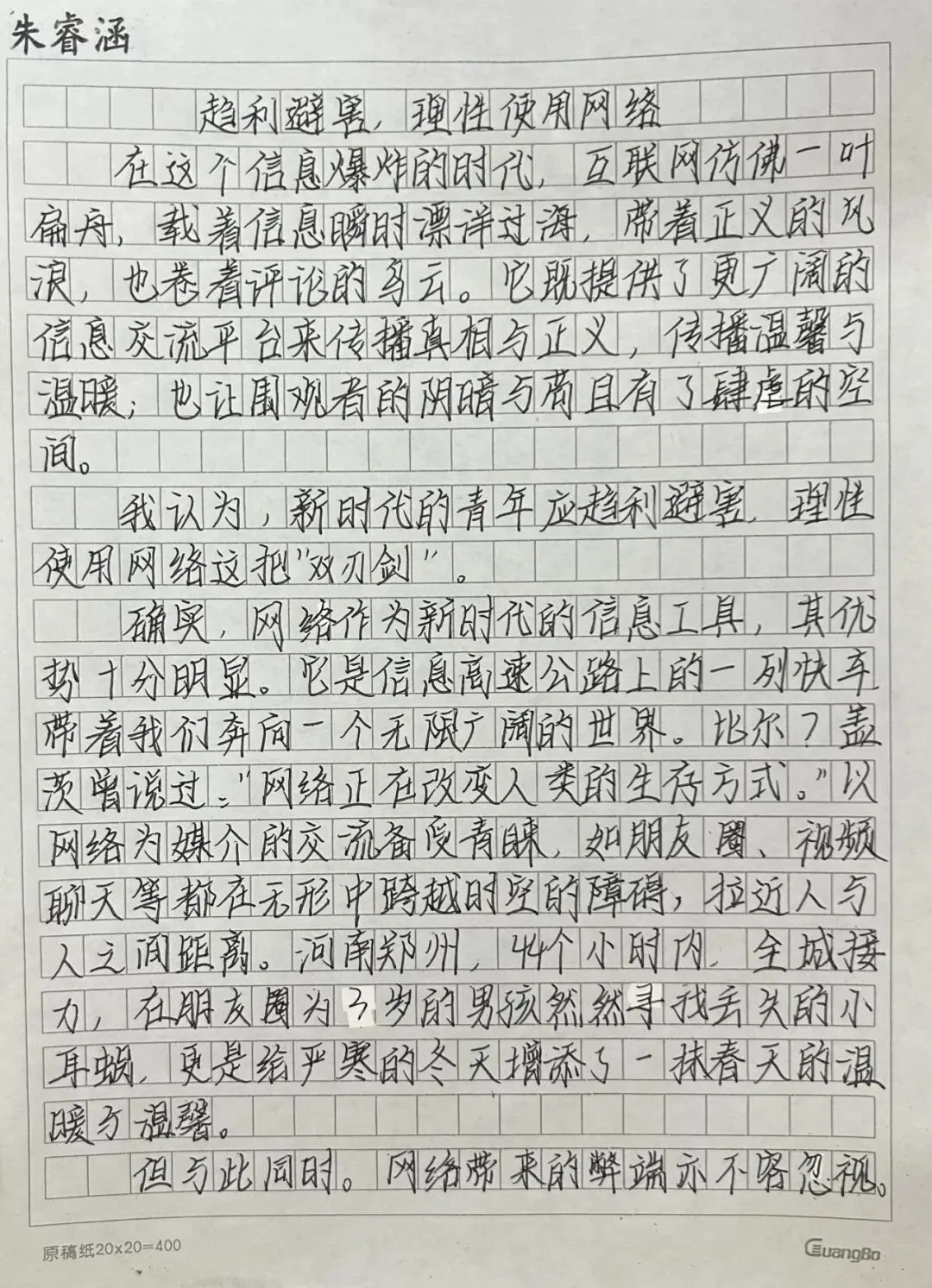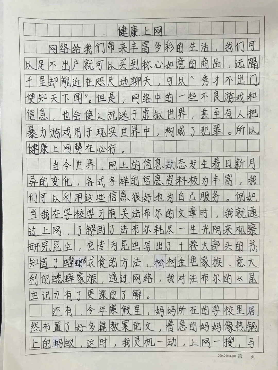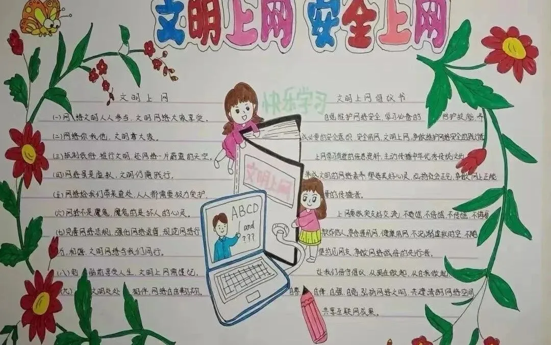 文明上网,科学用网。为了普及学校全体学生的网络安全知识,全面提高其网络素质和自我保护意识,以及对网络安全问题甄别的能力,学校还组织开展了“文明上网”主题征文活动。