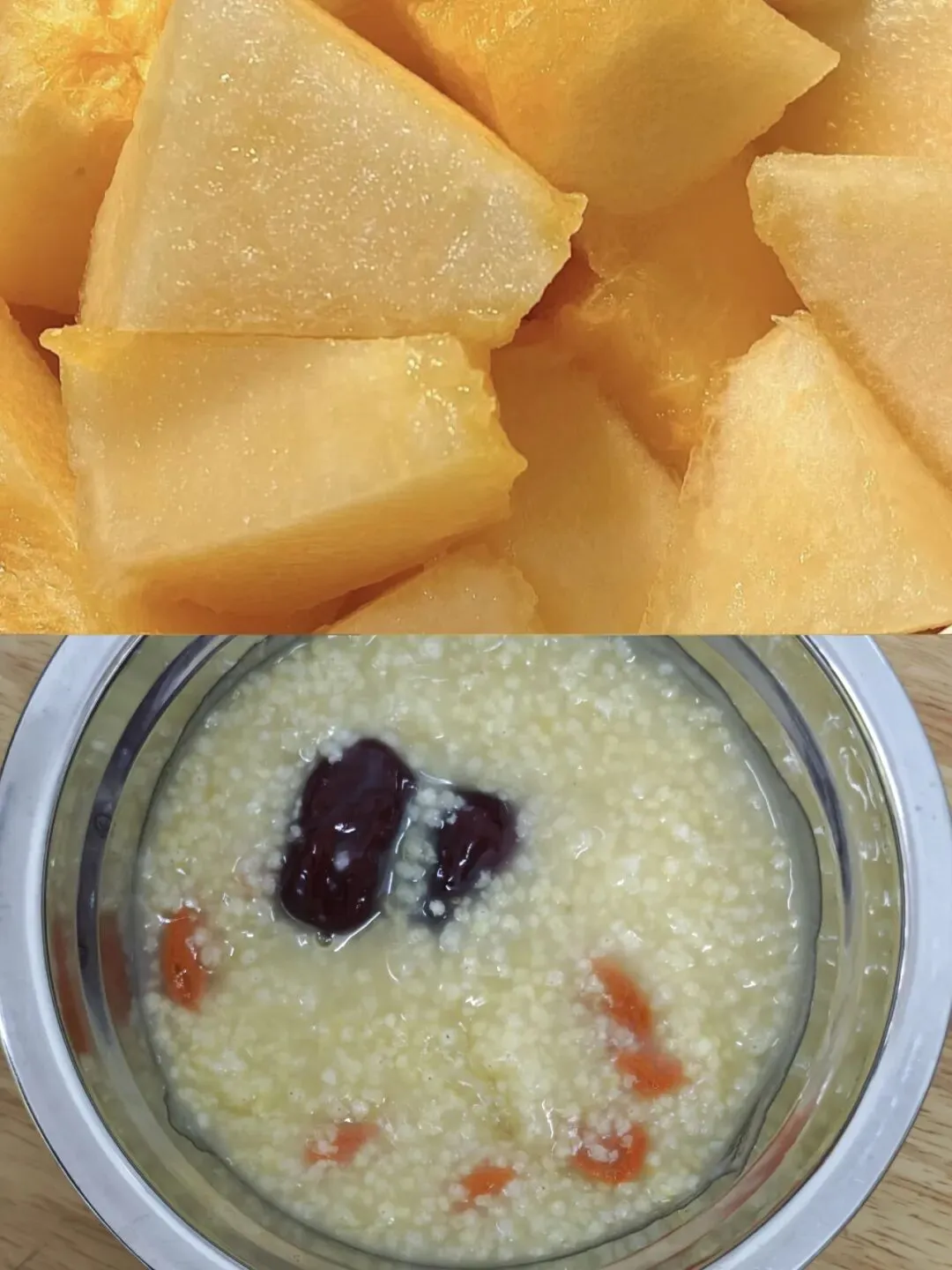 哈密瓜、红枣枸杞小米粥