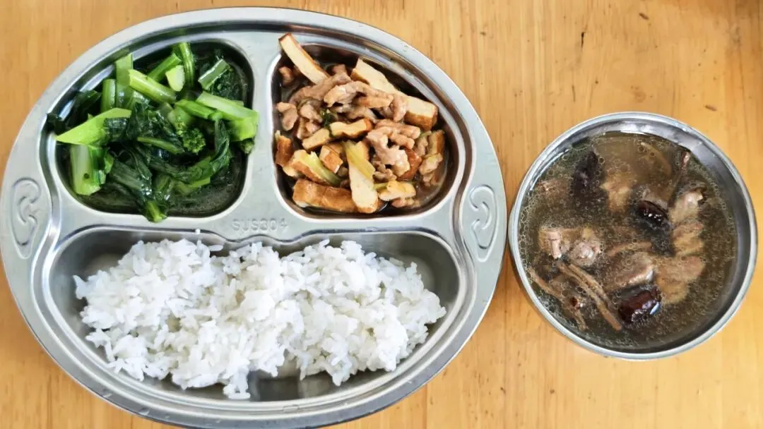芹菜香干炒肉丝、白灼菜心、茶树菇老鸭汤