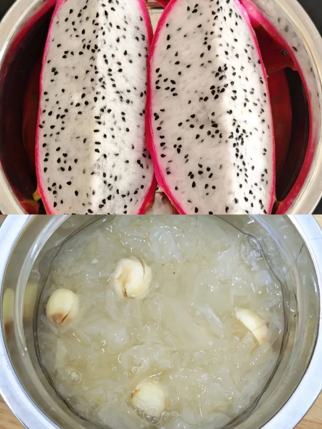 火龙果、银耳莲子羹