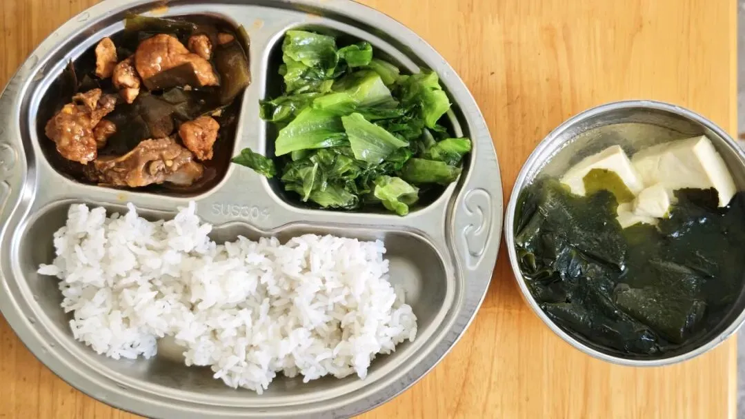 海带焖排骨、蒜蓉生菜、裙带菜豆腐汤