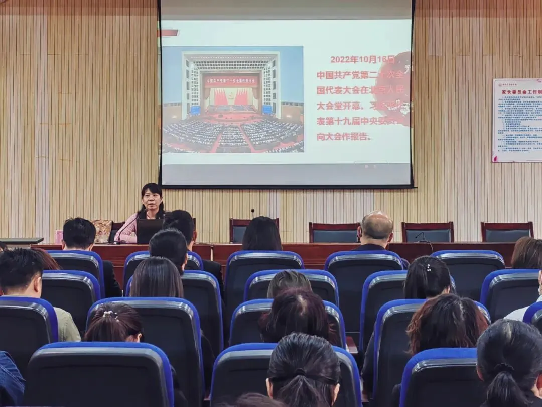“伟大变革:回顾、创新”、“使命任务:强国、复兴”、“伟业蓝图:团结、奋斗”三个方面为全校党员解读、宣讲党的二十大报告,授课内容立意高,寓意深,指导性强。