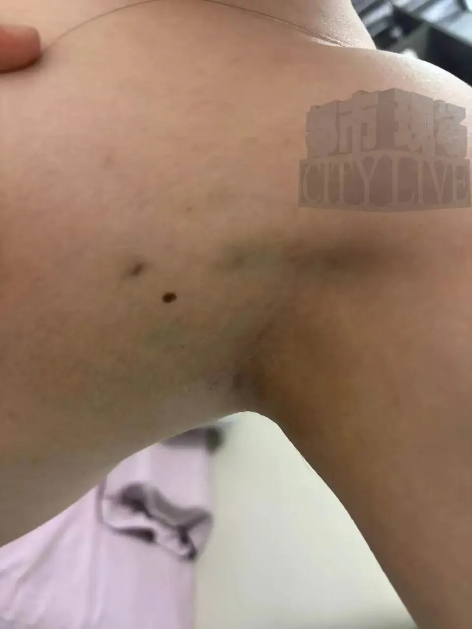 1月13日,都市现场记者见到刘女士时,她步履蹒跚,连正常行走都十分艰难。她拿出手机里的照片,身上满是红肿淤青,触目惊心。事情要从1月10日说起。当天,刘女士来到南昌市东湖区八一大道的“妆典美容店”化妆。因为之前来过,工作人员早就认识她,也见过她孕前的状态。一见到产后的刘女士,工作人员就开启了“攻击模式”:“你怎么变老了这么多啊?身材还胖成这个样子。”当刘女士说明是生了孩子后,对方更是精准抓住她的产后焦虑,轮番PUA。