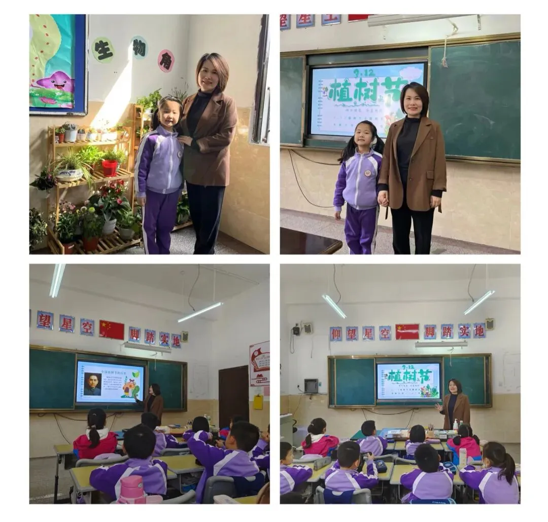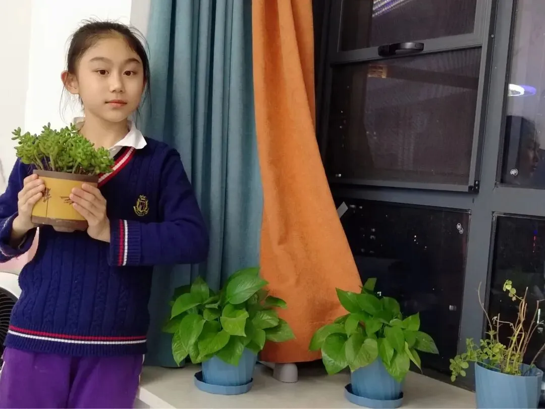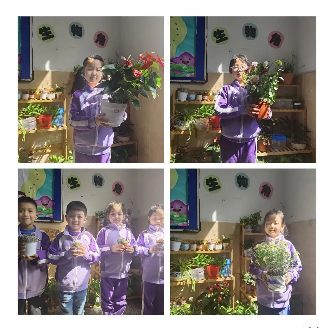 首先,学校利用国旗下讲话,号召全体同学:爱护绿色植物,拥抱美好春天。接着,各班同学认真布置班级生物角,和植物合影,在阳光和花草的映衬下,小朋友的笑容格外灿烂。