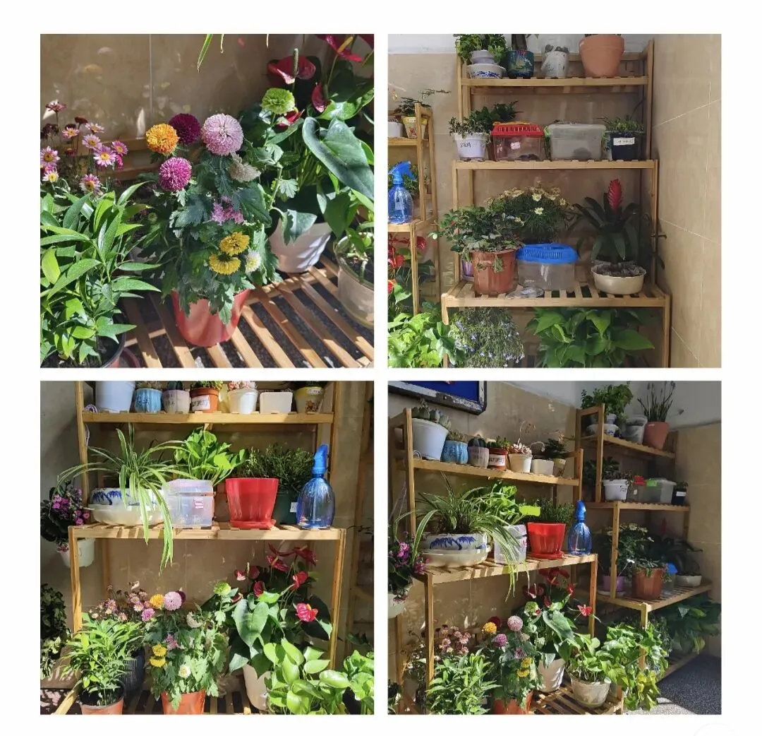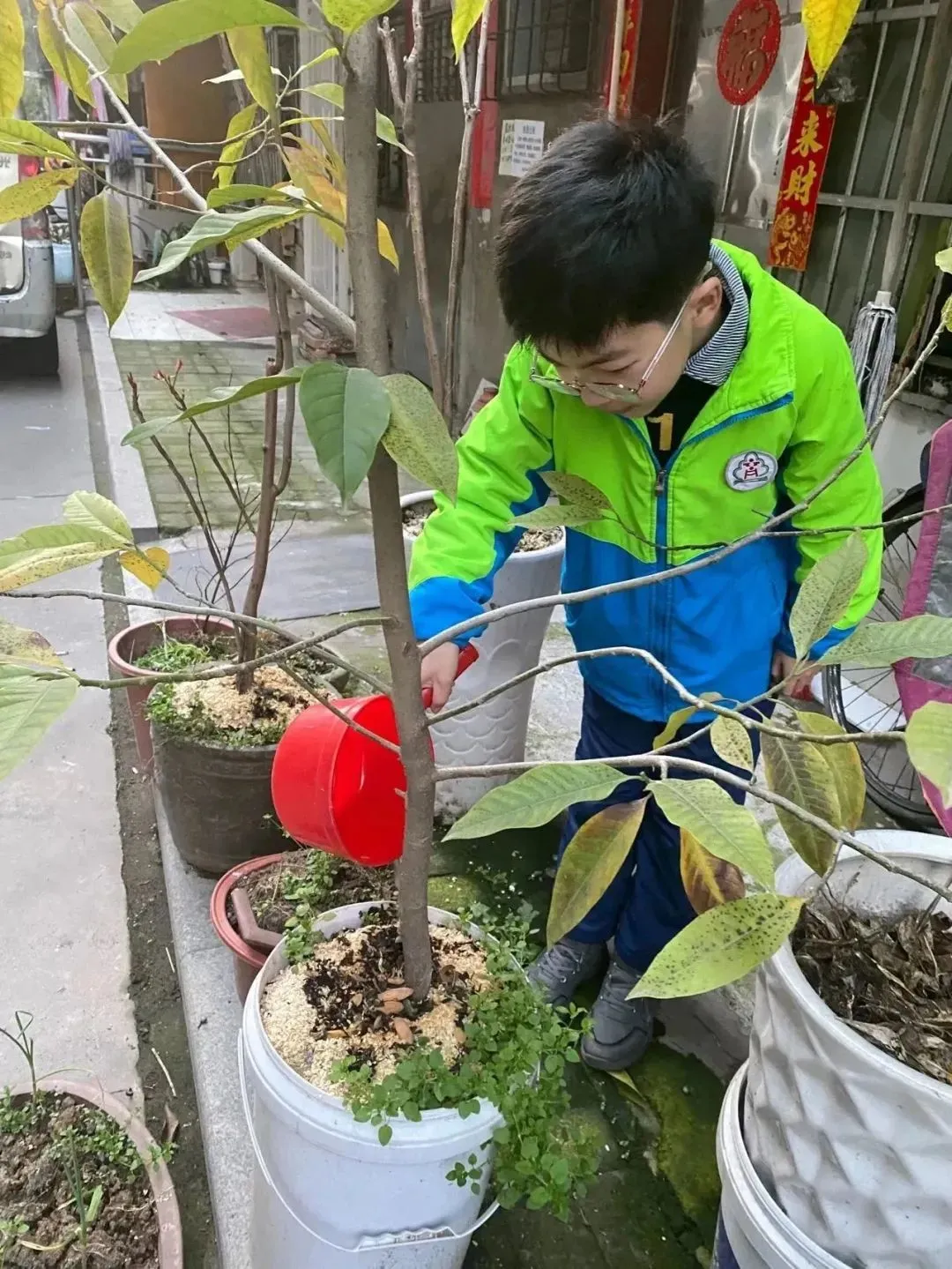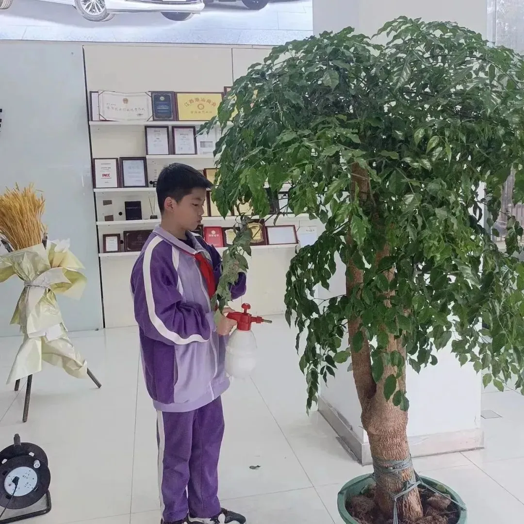 首先,学校利用国旗下讲话,号召全体同学:爱护绿色植物,拥抱美好春天。接着,各班同学认真布置班级生物角,和植物合影,在阳光和花草的映衬下,小朋友的笑容格外灿烂。