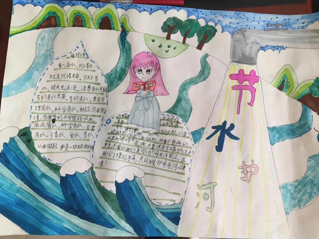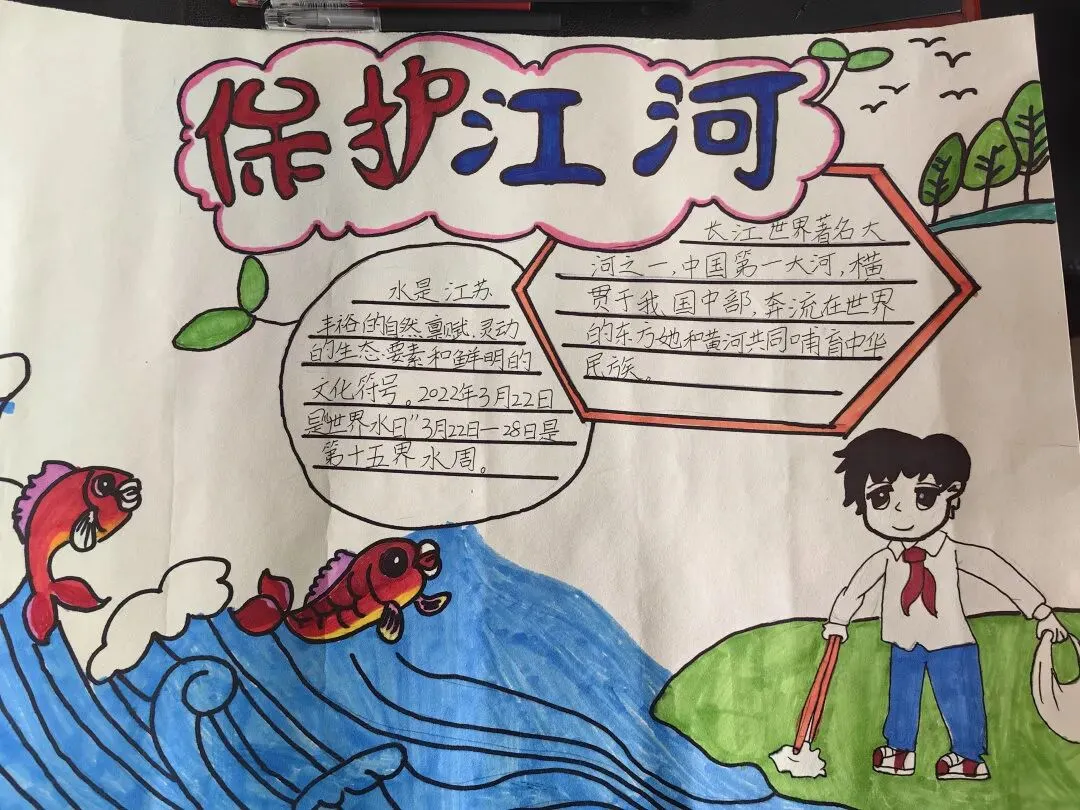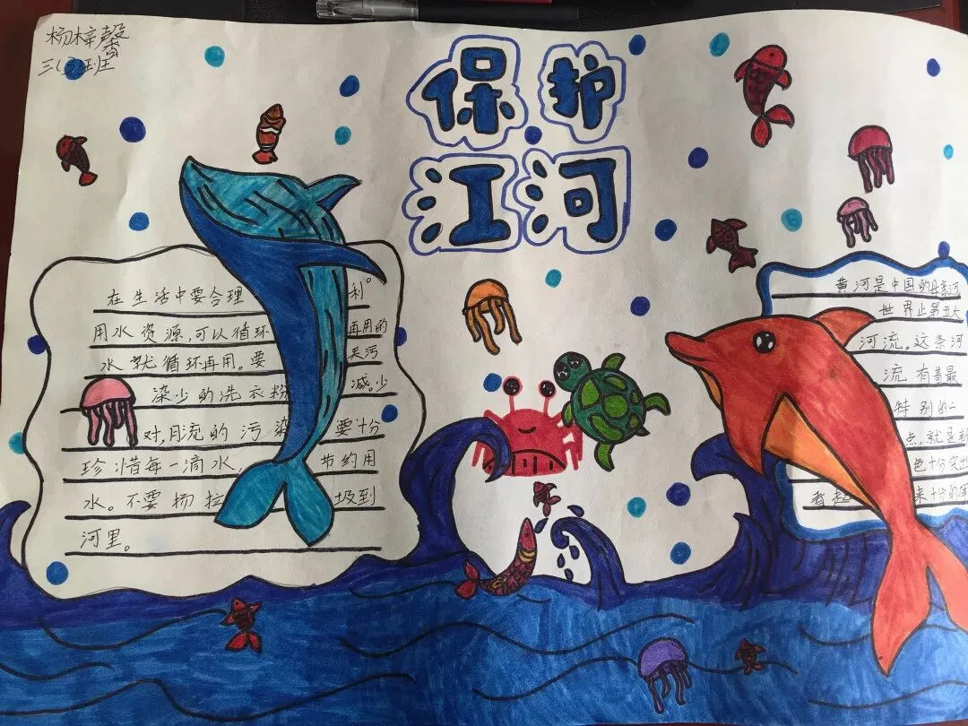 为了让环保意识深入人心,三年级同学开展了“保护河湖 节约用水”主题绘画,同学们稚嫩的小手拿着手中的画笔,设计了很多优秀而富有创意的作品。