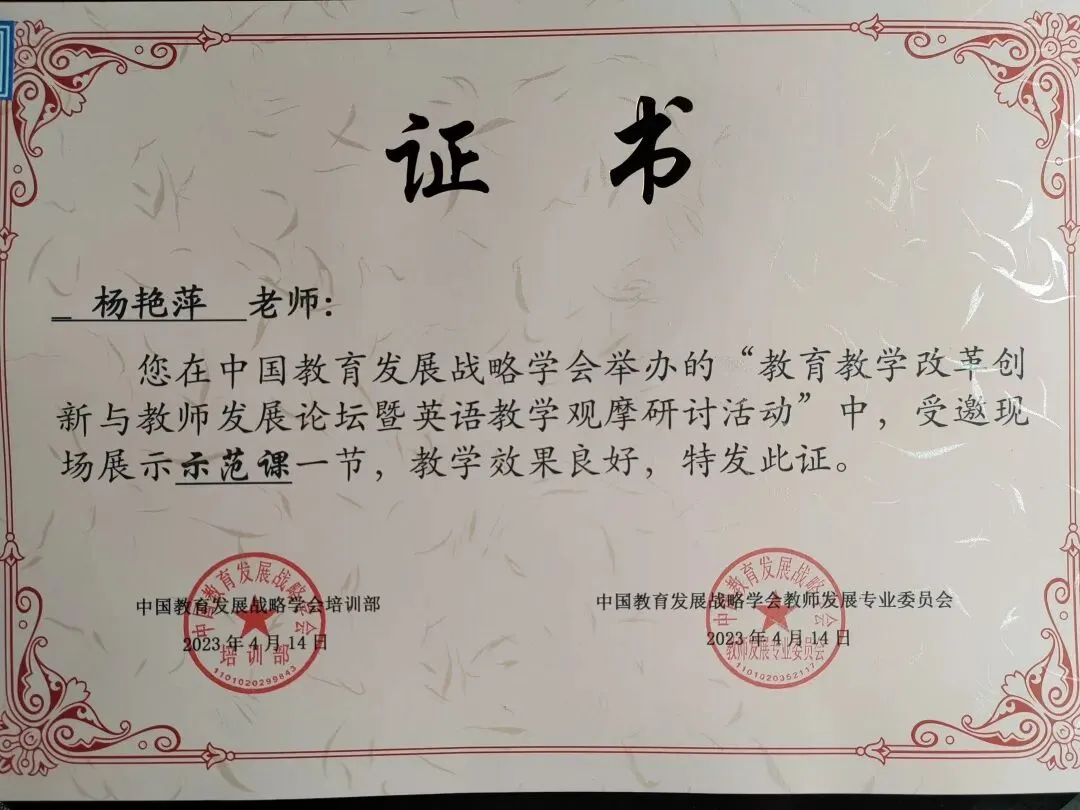 杨艳萍老师的课能够在全国教学舞台上完美呈现,得益于省、市、区教研员的悉心指导和教研团队的反复打磨,也是学校多年来一直重视教育教学工作的结果,是学校教师队伍建设厚积薄发的见证。